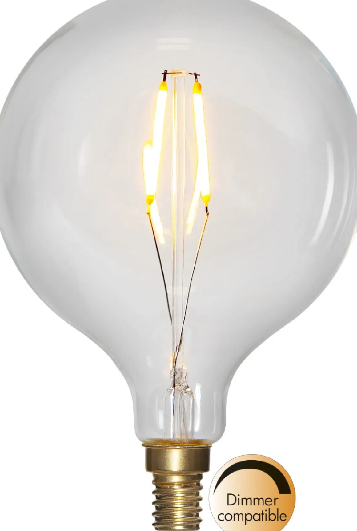 Glob 95 med E14-sockel och LED-ljus. Ljuset är härligt behagligt med sin varmvita ton. Vacker i många armaturer och ljusstakar! Lampan är på 2100K med ett ljusflöde på 100 lumen