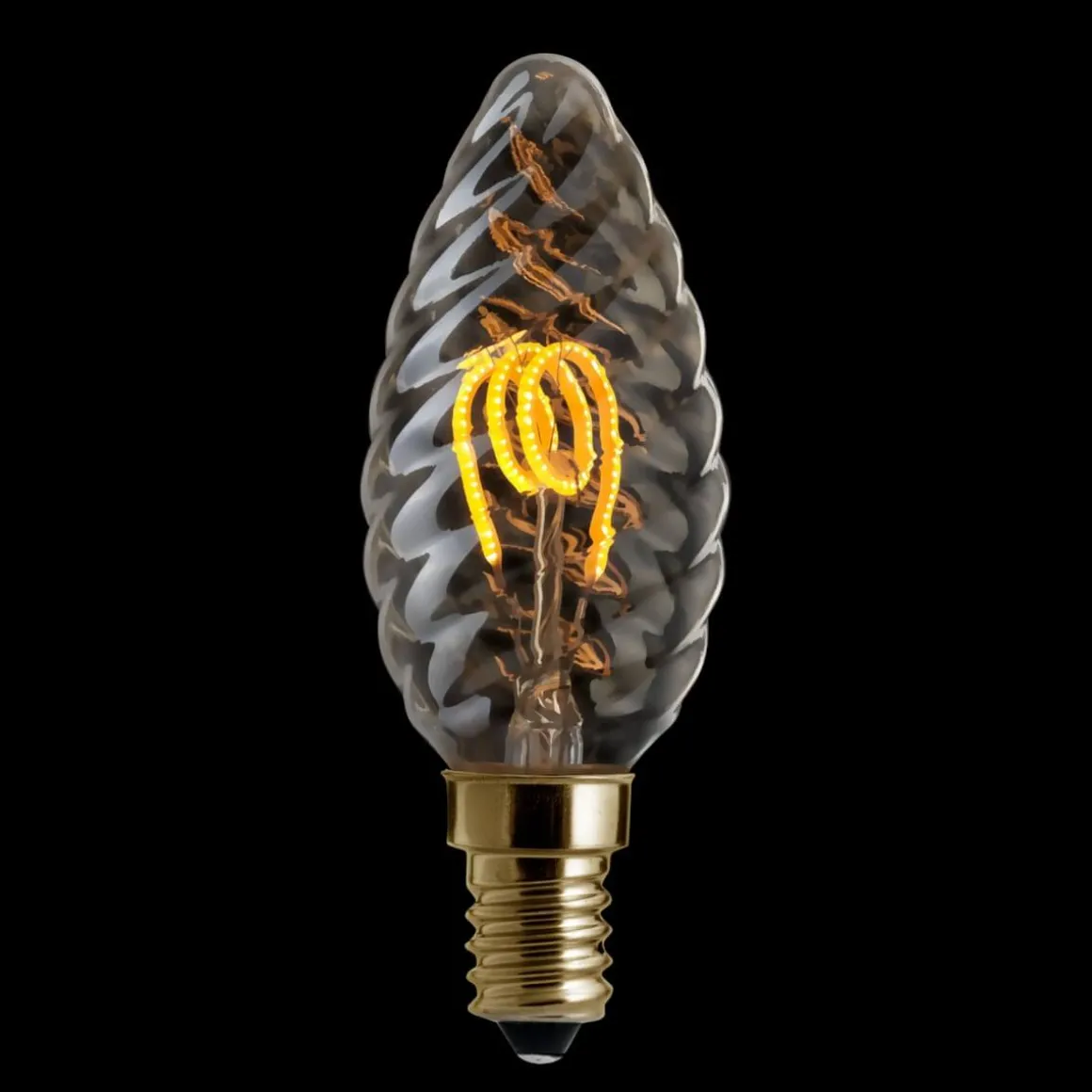 En så kul liten nykomling! Med sina snurrade filament ger den ett häftigt intryck! Ger ett varmt och behagligt sken genom sitt guldtonade glas.