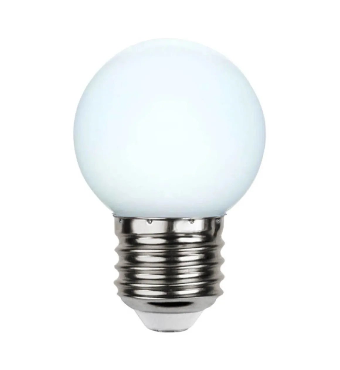 E27 LED klotlampa med en färgtemperatur på 6500K och endast 15 lumen passar hen bra i en partyslinga tex.