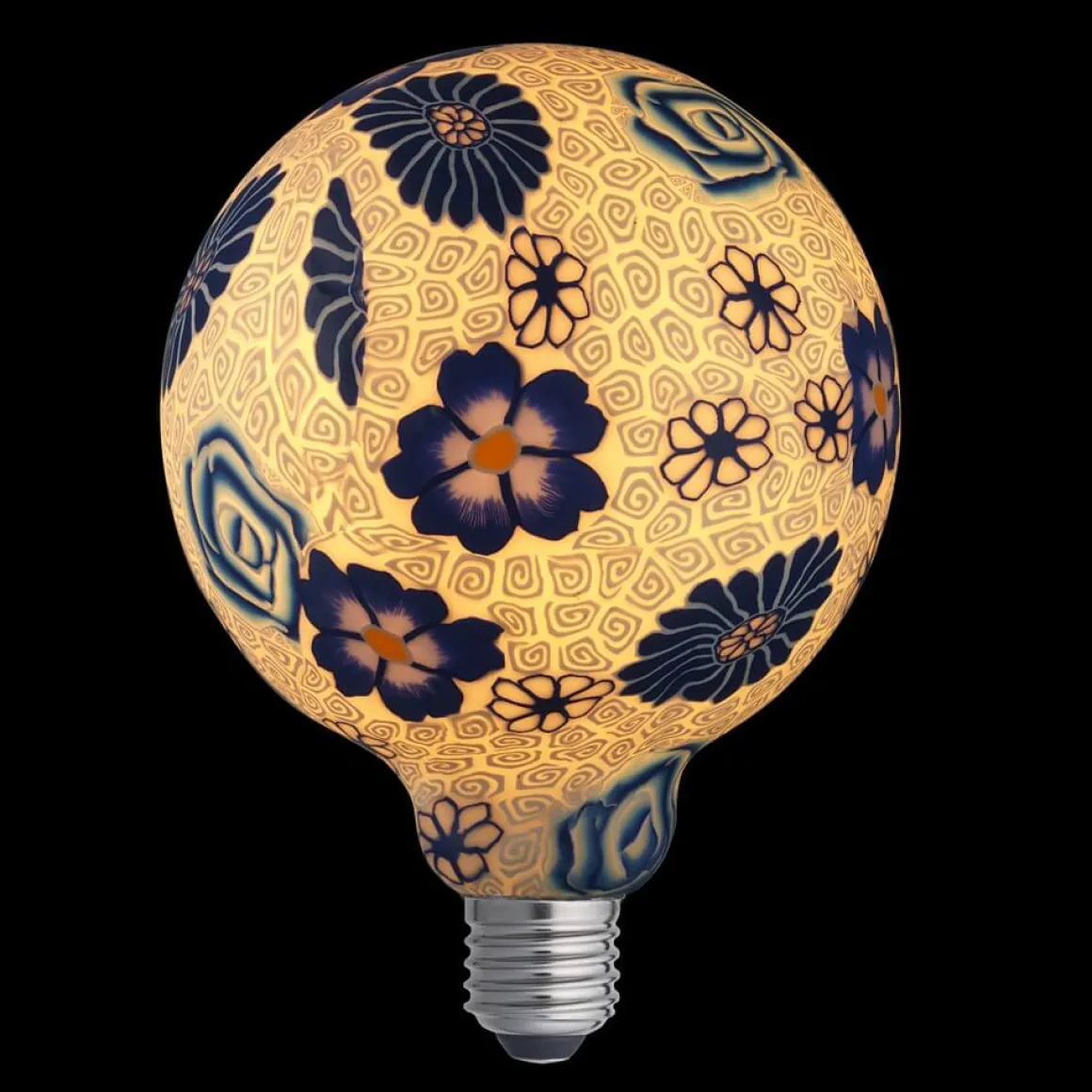 Flower blue från Unison är en dekorativ LED-lampa med läckert mönster av blå blommor. Den ger ett varmvitt sken och är dimmerkompatibel med E27-sockel.