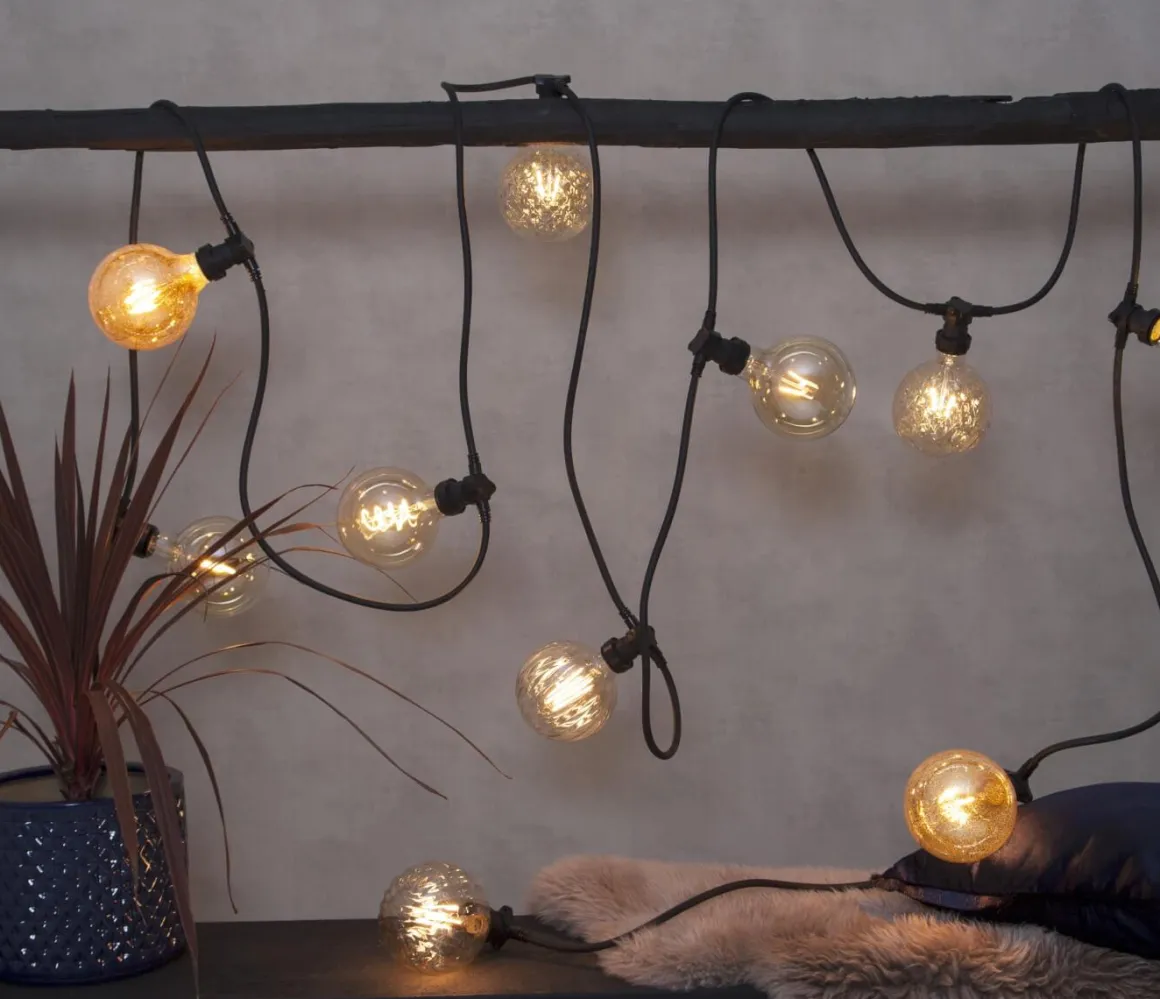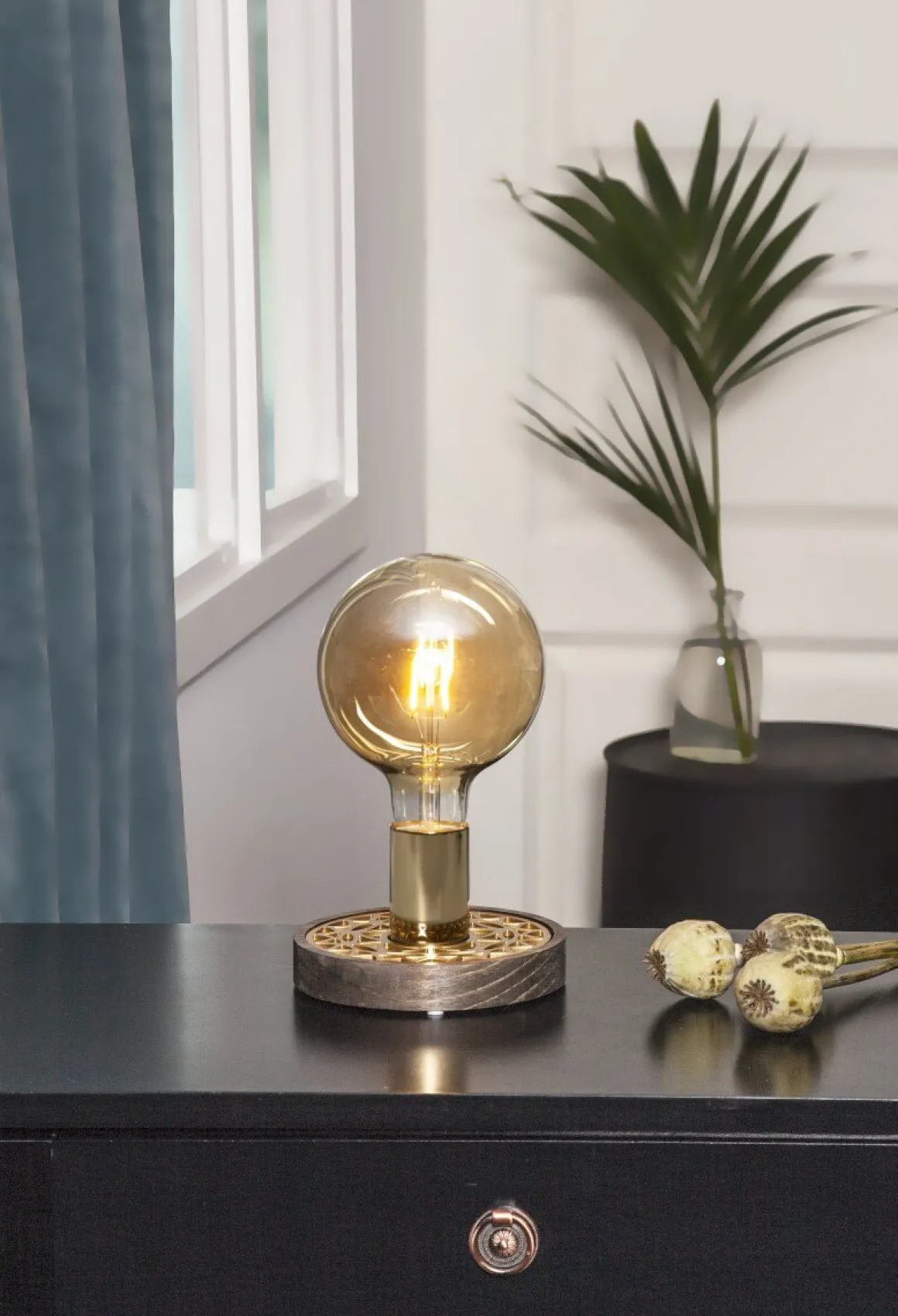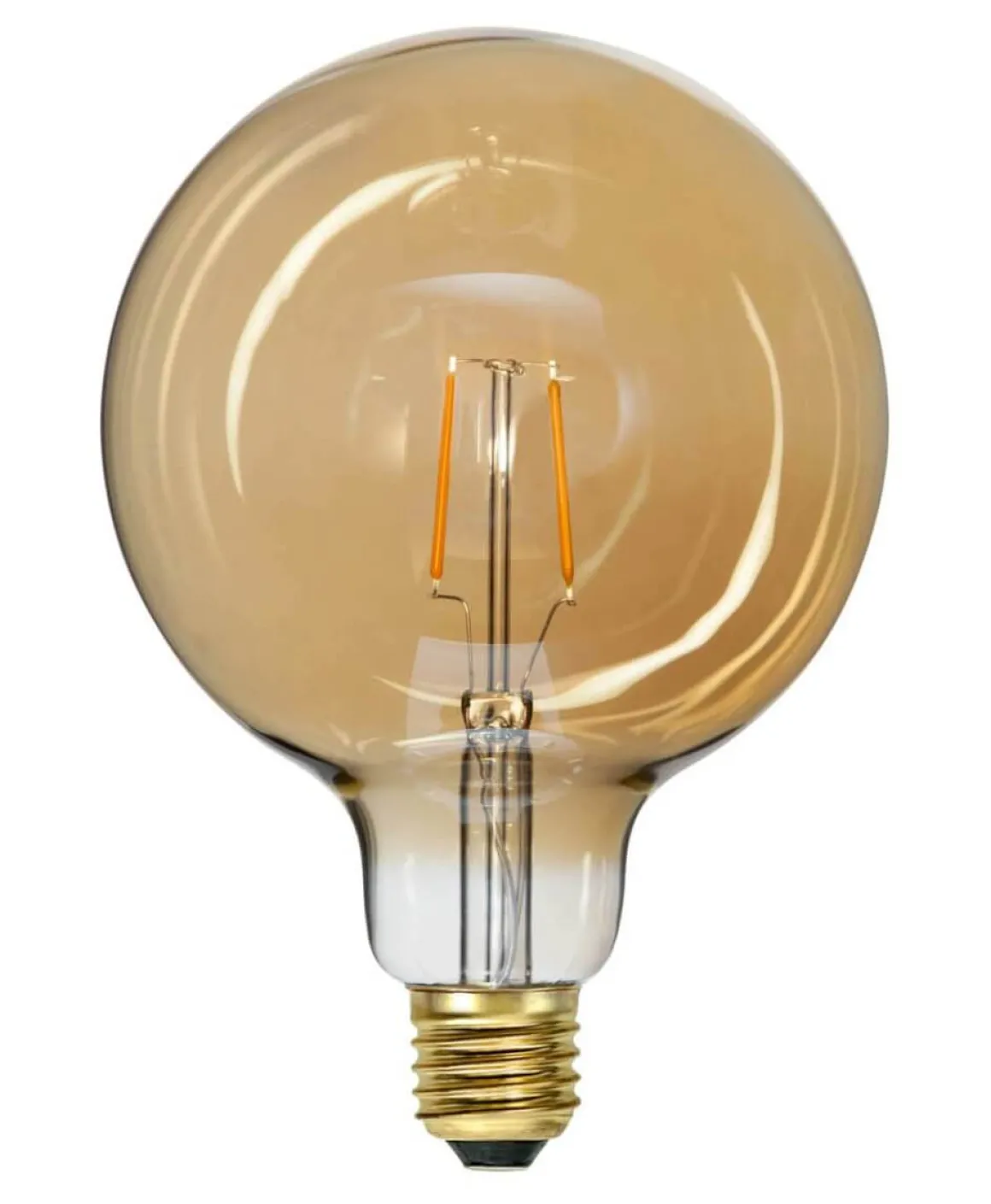 Dekoration LED-lampa från Star Trading med amberfärgat glas som ger varmvitt behagligt sken. Lampan har en E27-sockel.