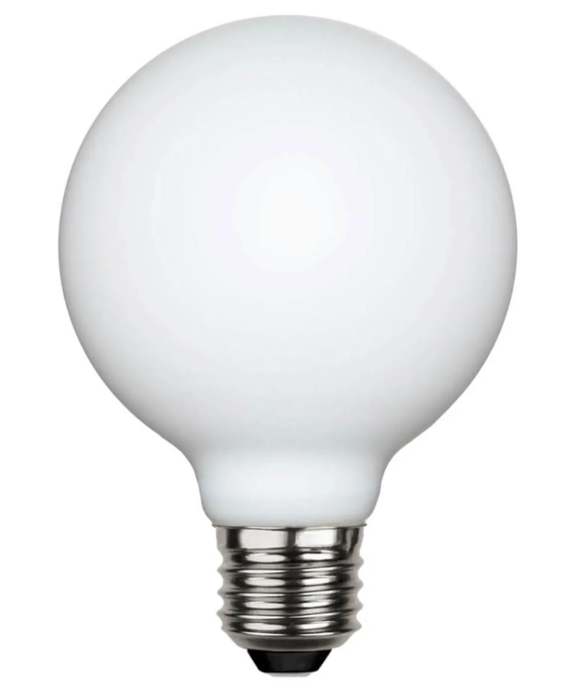 Opalvit globlampa med E27 sockel, 2700K med ett ljusflöde på 400 lumen. Globen är dimmerkompatibel.