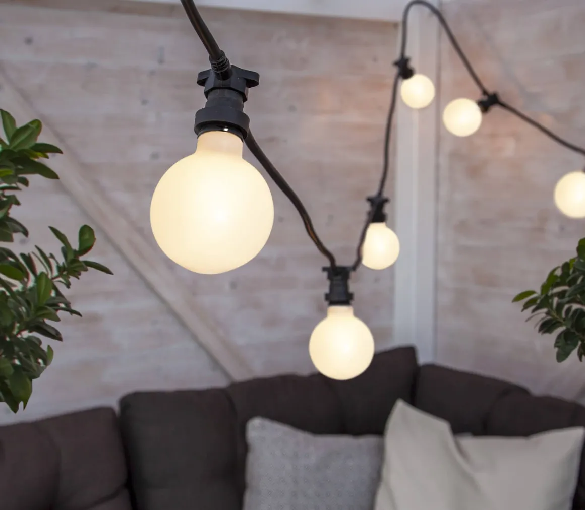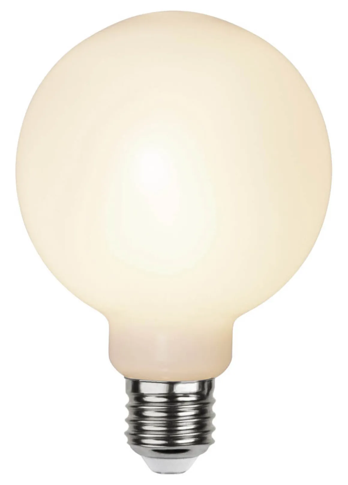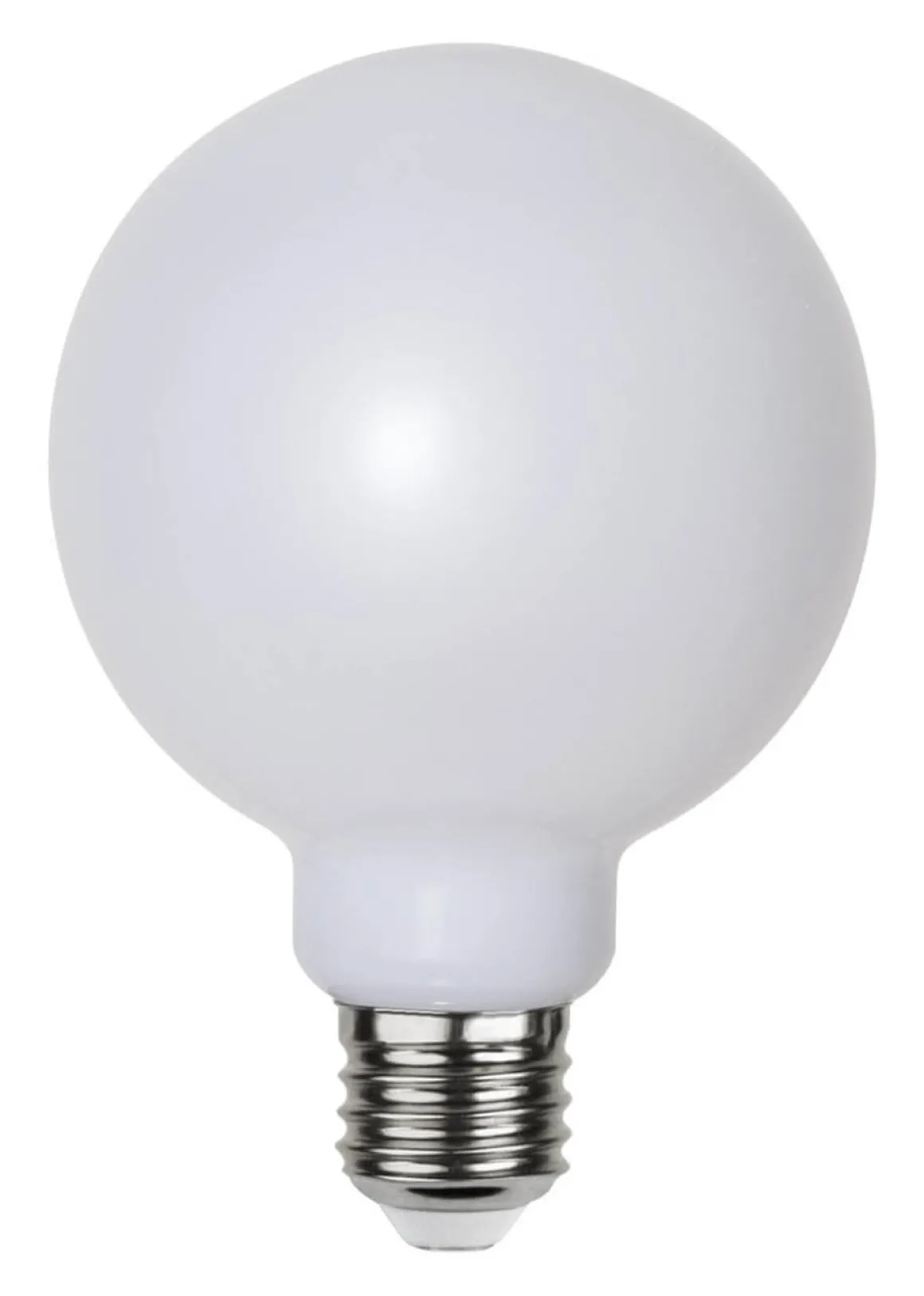 LED-lampa med ett hölje av opalvitt plast för en vacker och jämn ljusspridning. Denna ljuskälla tål utemiljöer bättre än de vanliga glas Led-lamporna. Färgtemperaturen är på 2700K och sockeln är standard E27.