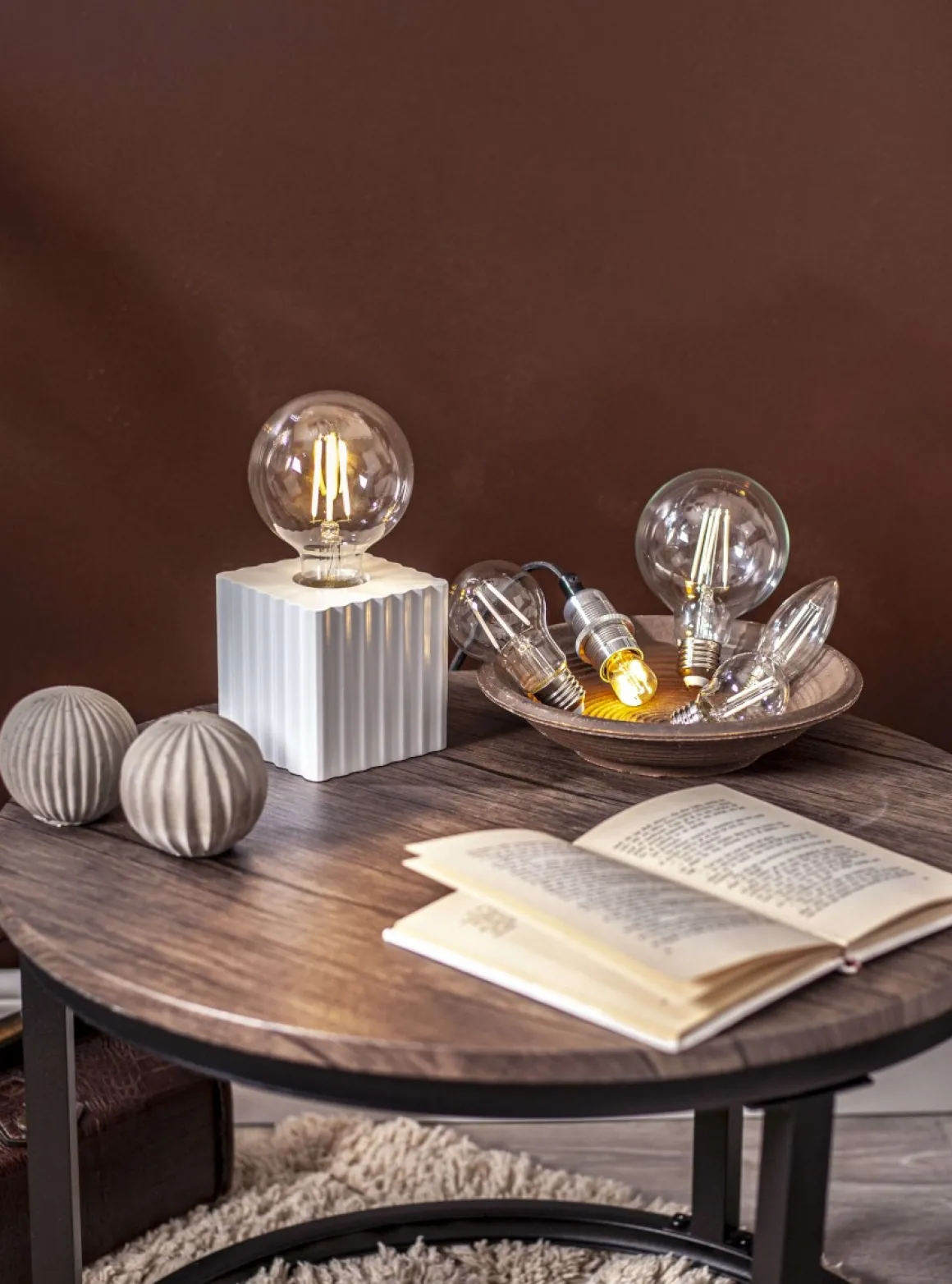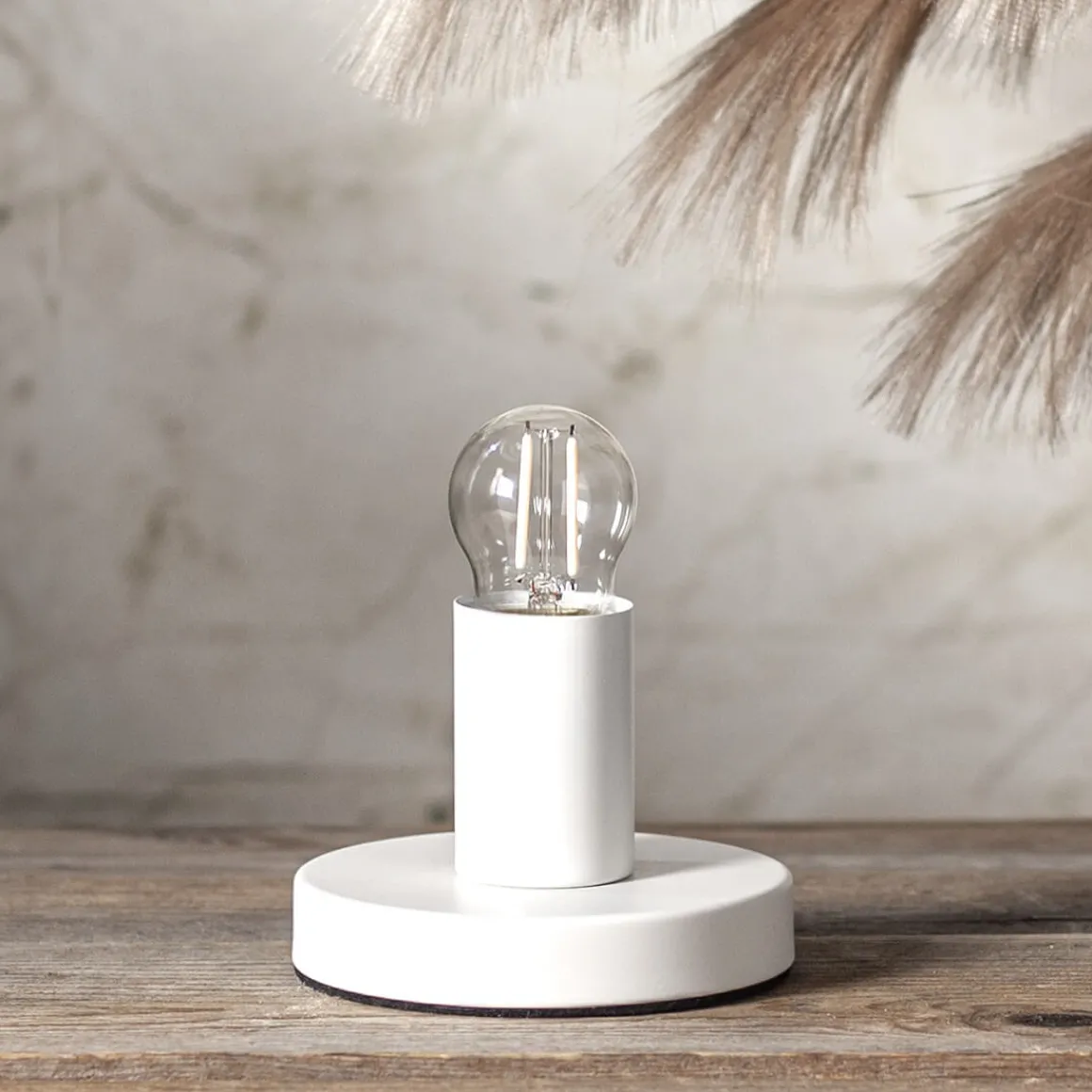 Klar filament LED-Klot med E27-sockel från star trading . Färgtemperaturen är varmvit på 2700K och på 250 lumen. Lampan är också dimmerkompatibel. Den här ljuskällan har vita filament istället för gula vilket gör att den syns mindre när den är släckt.