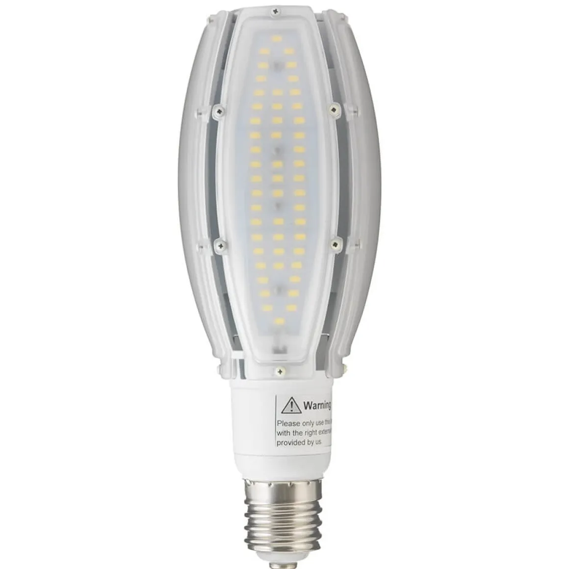 LED lampa med högt lumen från Unison. Ljusfärgen är kallvit på 4000K. Denna ljuskälla är en ersättare för kvicksilverlampor och passar i tex stora utrymmen, på garageuppfarter eller som gångvägsbelysning där du behöver mycket ljus.
