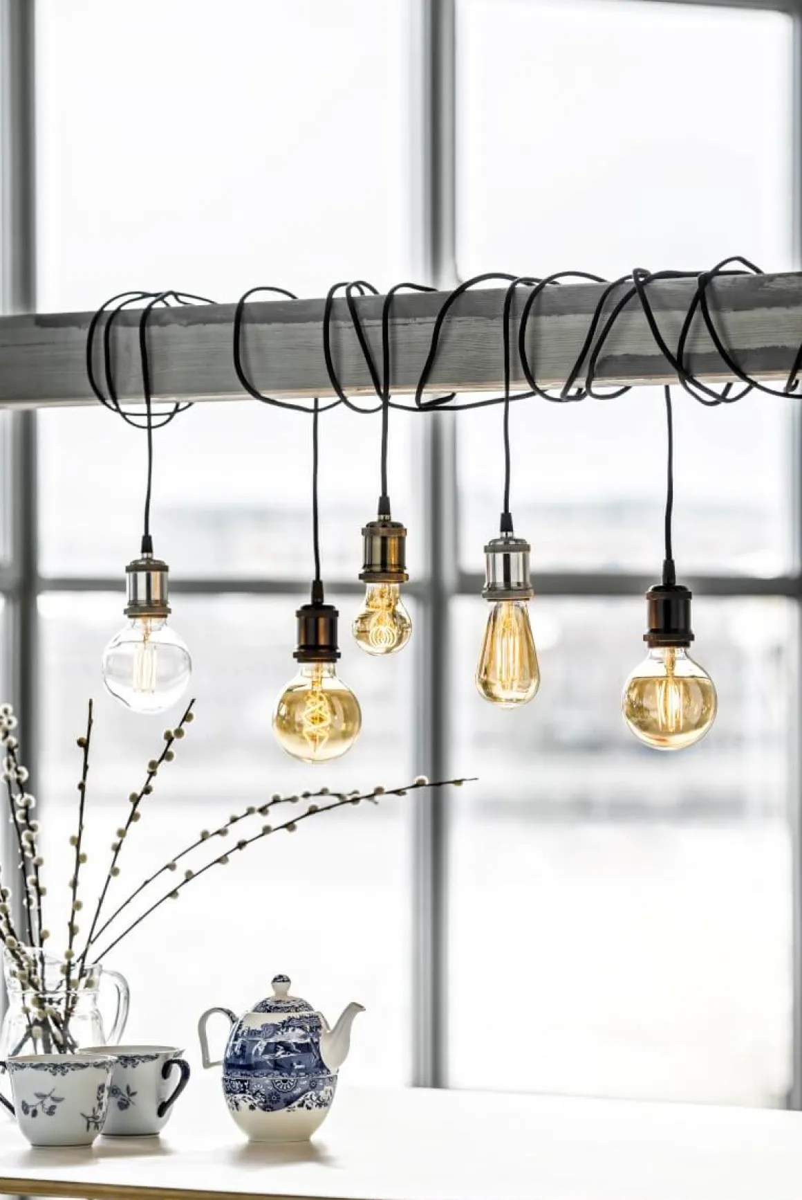 vackert designat lampupphäng i Svart med hela 3,5 meter lång textilsladd.