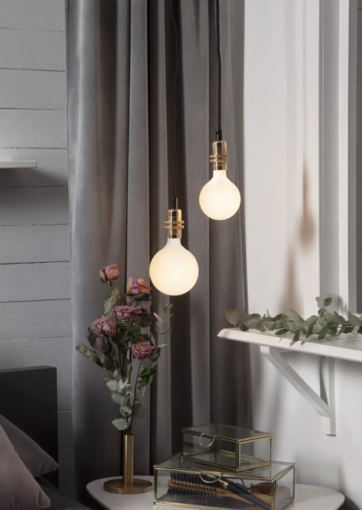 Läckert upphäng med 3,5 meter svart textilkabel med en lamphållare i mässing som verkligen lyfter rummet, kombinera med en cool ljuskälla för bästa effekt.