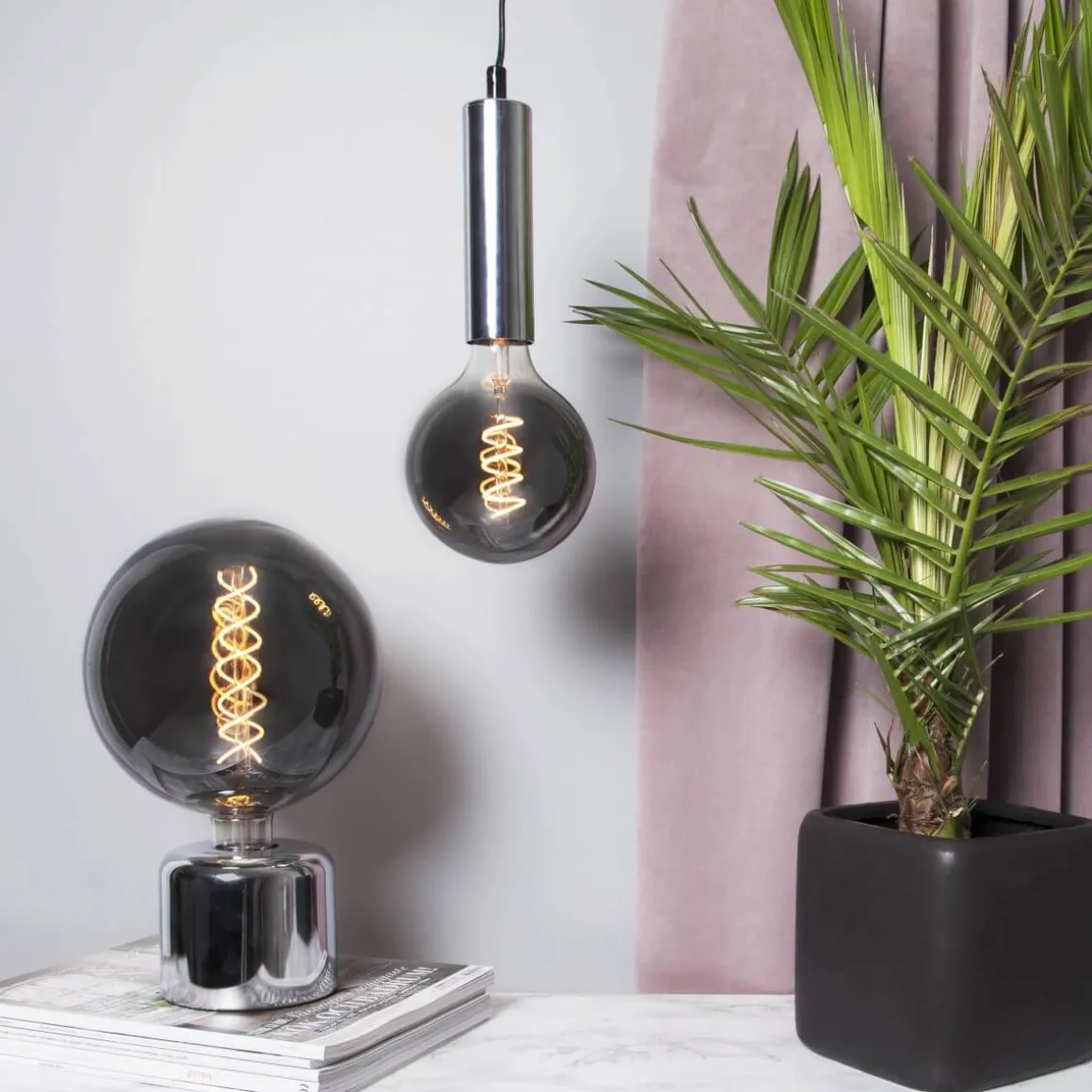 Sladdställ i metall och en lång läcker E27 sockel av krom. Kombinera upphänget med en riktigt snygg dekorations ljuskälla. Ett upphäng som ger fina inredningsmöjligheter i huset.