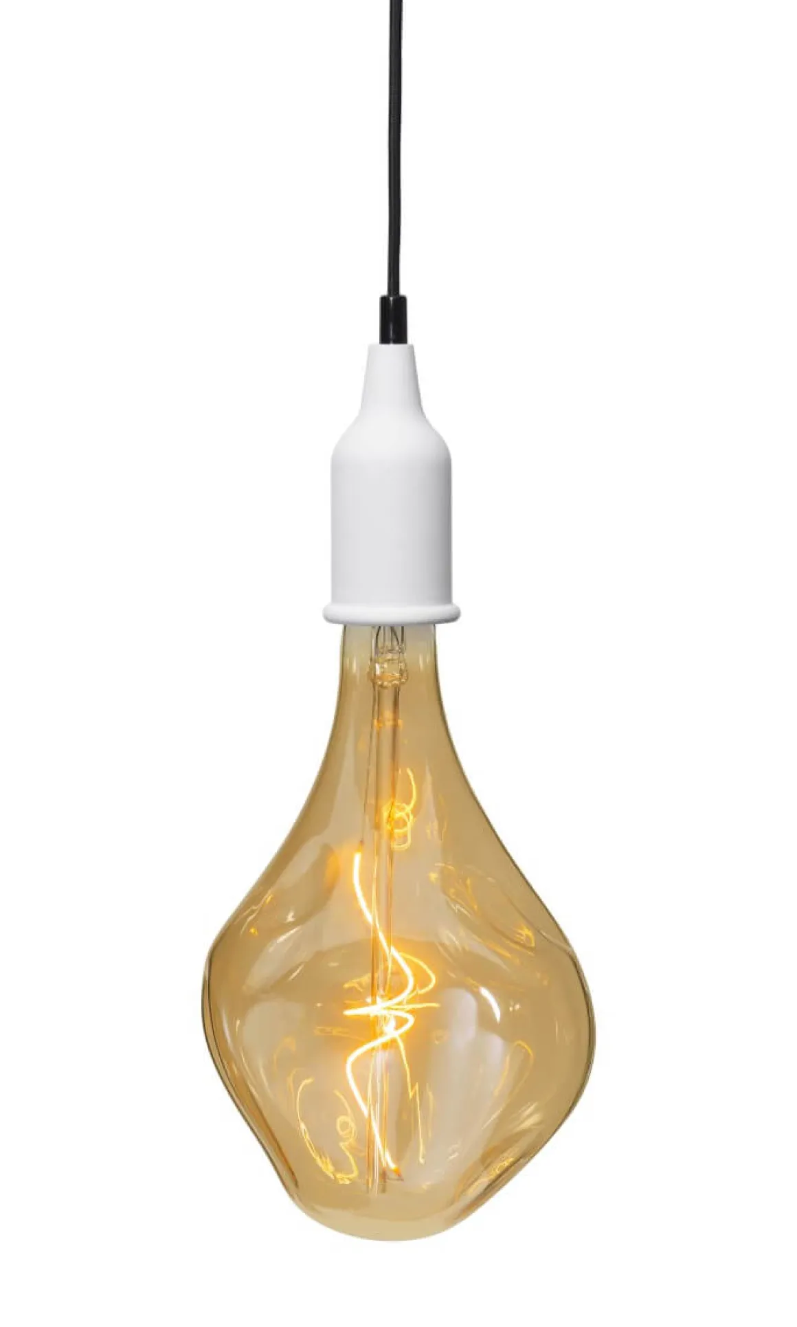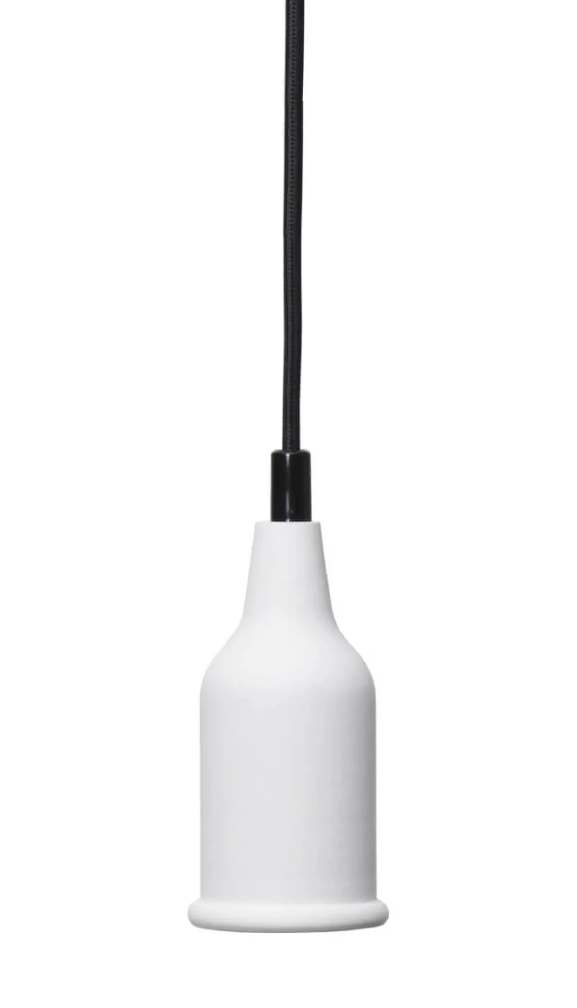 Snyggt upphäng från Star Trading med mattvit lamphållare kombinerat med en svart tygkabel, enkelt men så snyggt! Kombinera med en läcker ljuskälla för bästa effekt.