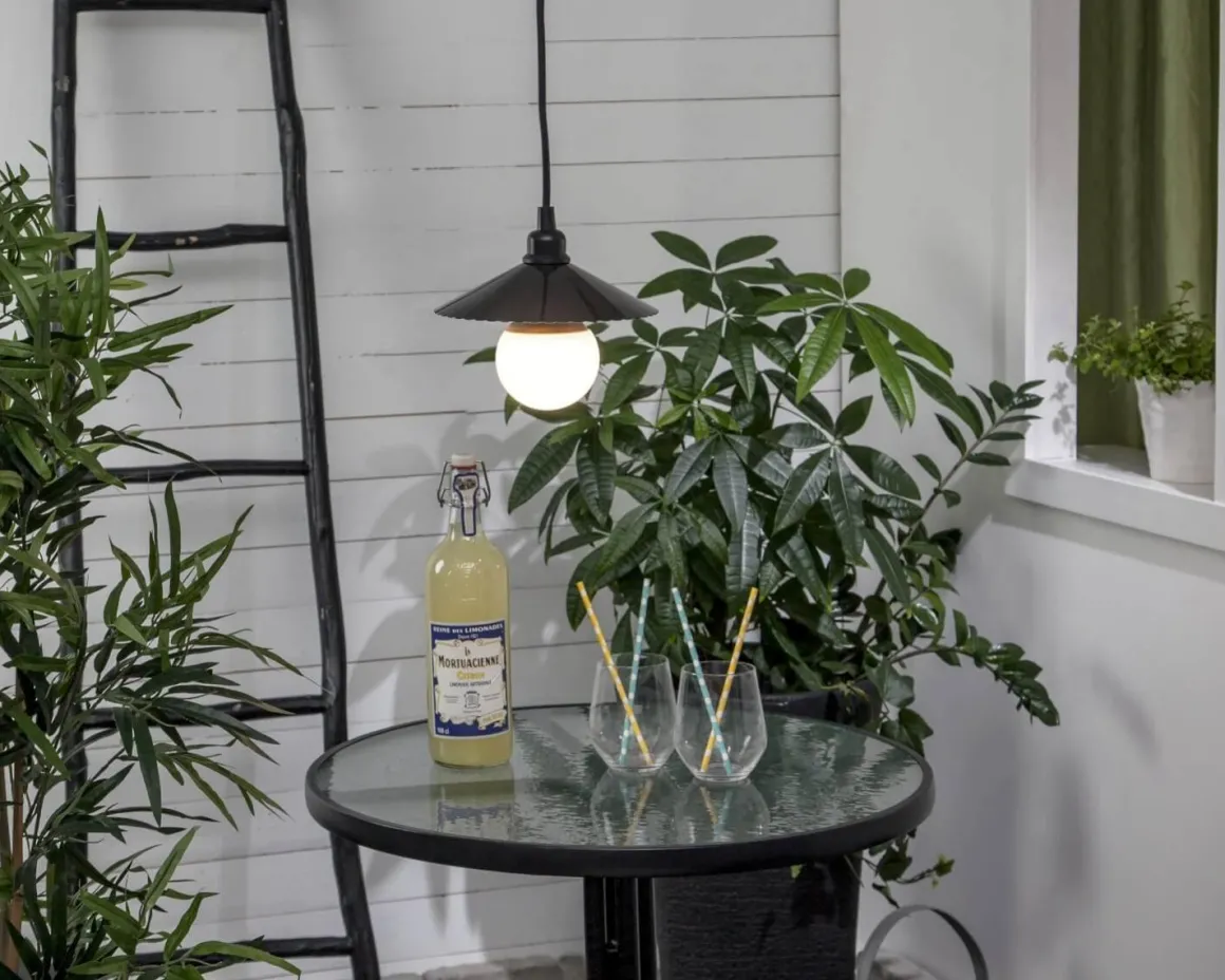 Sladdställ för utomhusbruk med 2,5m svart gummikabel. Kombinera med en snygg ljuskälla. För E27 sockel.