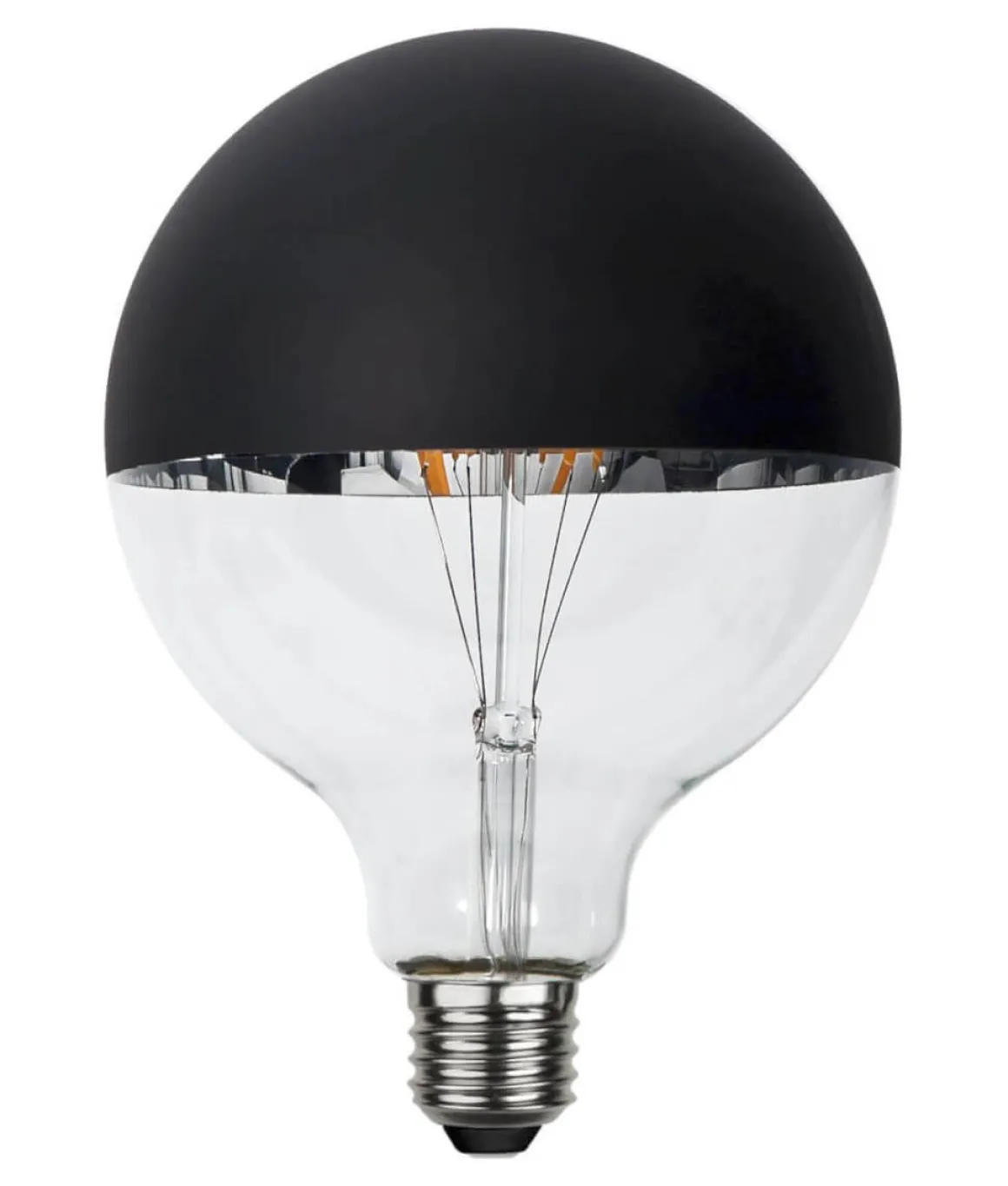 Toppförspeglad filament LED-lampa med E27-sockel. Färgtemperaturen är på 2700k och ljusflödet är 330 lumen. Denna lampan är dimmerkompatibel.