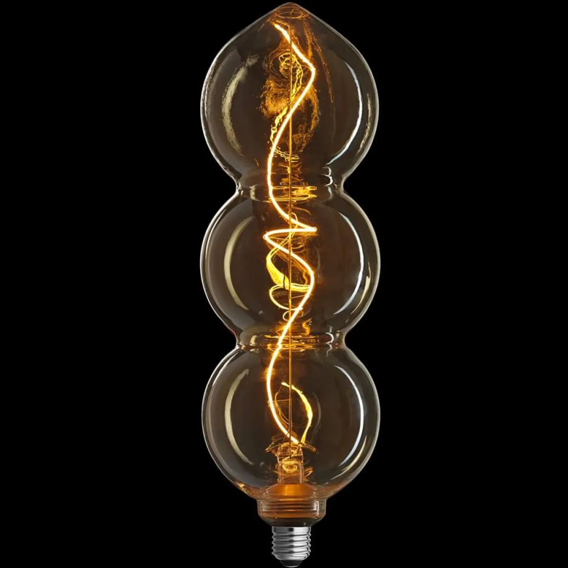 Om du är på jakt efter en riktigt tuff ljuskälla så kan du stanna precis här. Triple Nero från Unison blir verkligen ett blickfång i din armatur. Triple Nero har förutom den tuffa designen även en inbyggd tre stegs dimning. Ljuskällan har således 3 olika styrkor som på den här lampan är 4 watt, 2,2 watt och 0,9 watt. Du ändrar ljusstyrkan genom att tända och släcka din lampa. Just den här modellen har dessutom minnesfunktion så den kommer ihåg vilken styrka du senast använde. Perfekt om du har lampan kopplad till en timer. Här ser du Triple Nero med amber/guldfärgat glas.