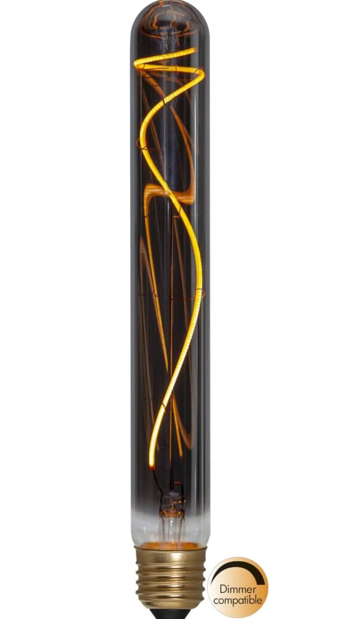 LED-lampa med coolt rökfärgat glas från Star Trading med E27-sockel. Färgtemperaturen är på varma 2200 Kelvin. Ljuskällan är dimmerkompatibel.