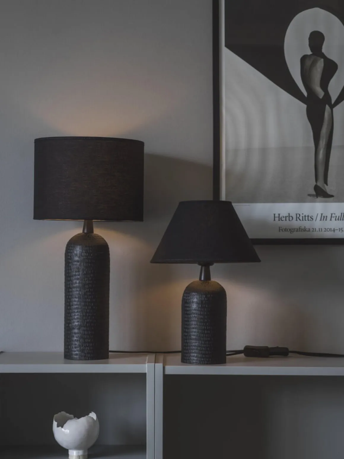 Empire är en klassisk lampskärms serie från PR-home som finns i flertalet storlekar och färger i materialen bomull eller Lin, här ser du Empire 25 cm (näst minst) i tyget Franza Svart.