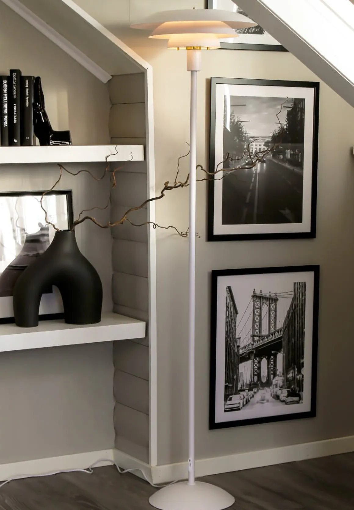 Kolla in den ljuvliga Epsilon golvlampan! Denna skönhet som med sina tre vitlackade metallskärmar sprider ett mjukt och förtrollande ljus som får varje rum att lysa med ett mjukt sken. Strömbrytaren sitter smidigt på lamphållaren så att du kan nå att tända och släcka den med lätthet. Men det är inte allt – med denna lampa följer dubbla dekorringar och knoppar så att du kan anpassa den till dina personliga stilval. Välj mellan krom och matt mässings detaljer för att göra den perfekt för ditt hem. Och det blir ännu bättre: kombinera den med andra lampor från Epsilon-familjen för att skapa en perfekt harmoni i ditt hem!
