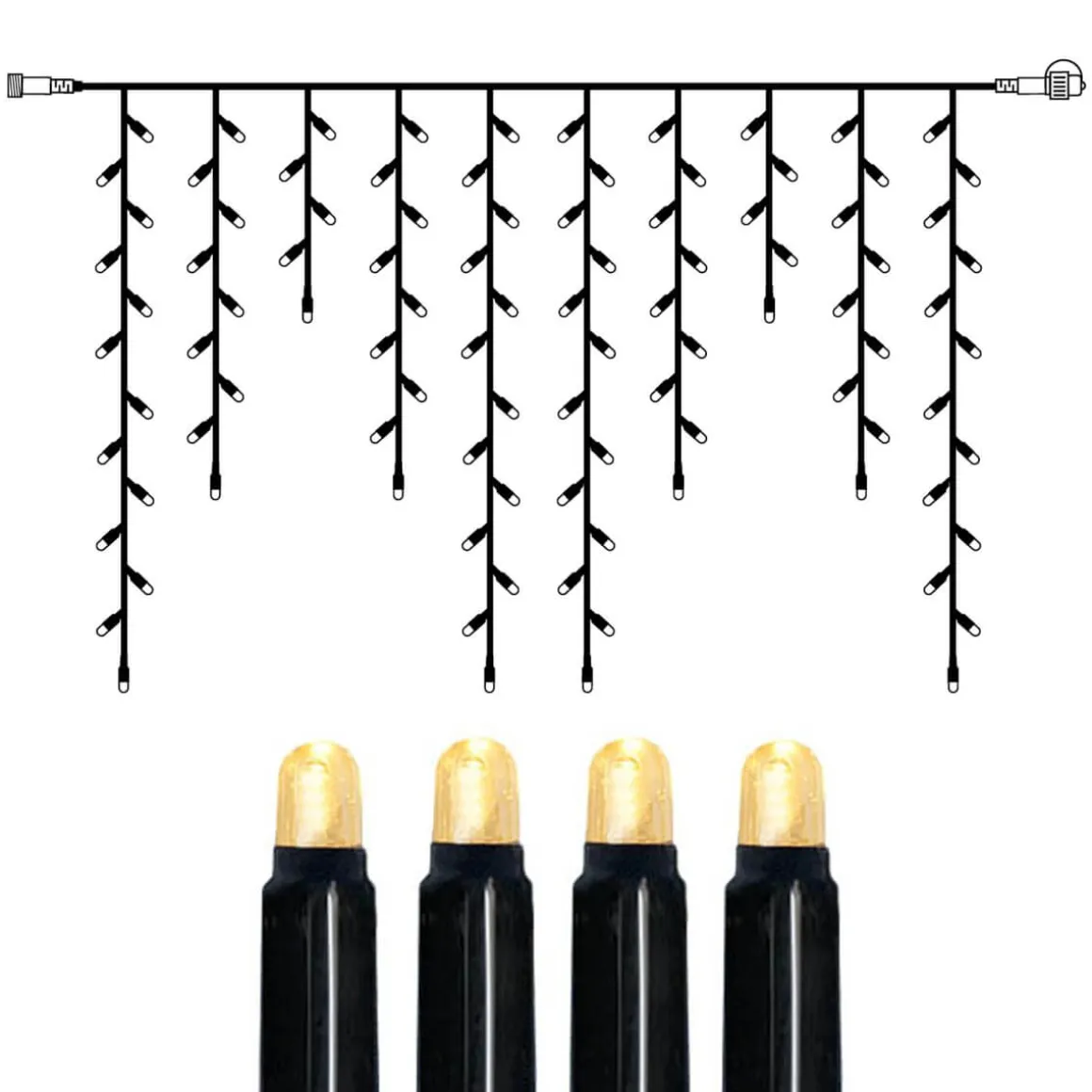 Förlängning 2x1m extra Istappar. 100 varmvita LED. Svart kabel. System LED är ett premiumsystem för större och hållbara dekorationer. Produkterna har en lång livslängd och ger ett mycket kraftigt ljussken.