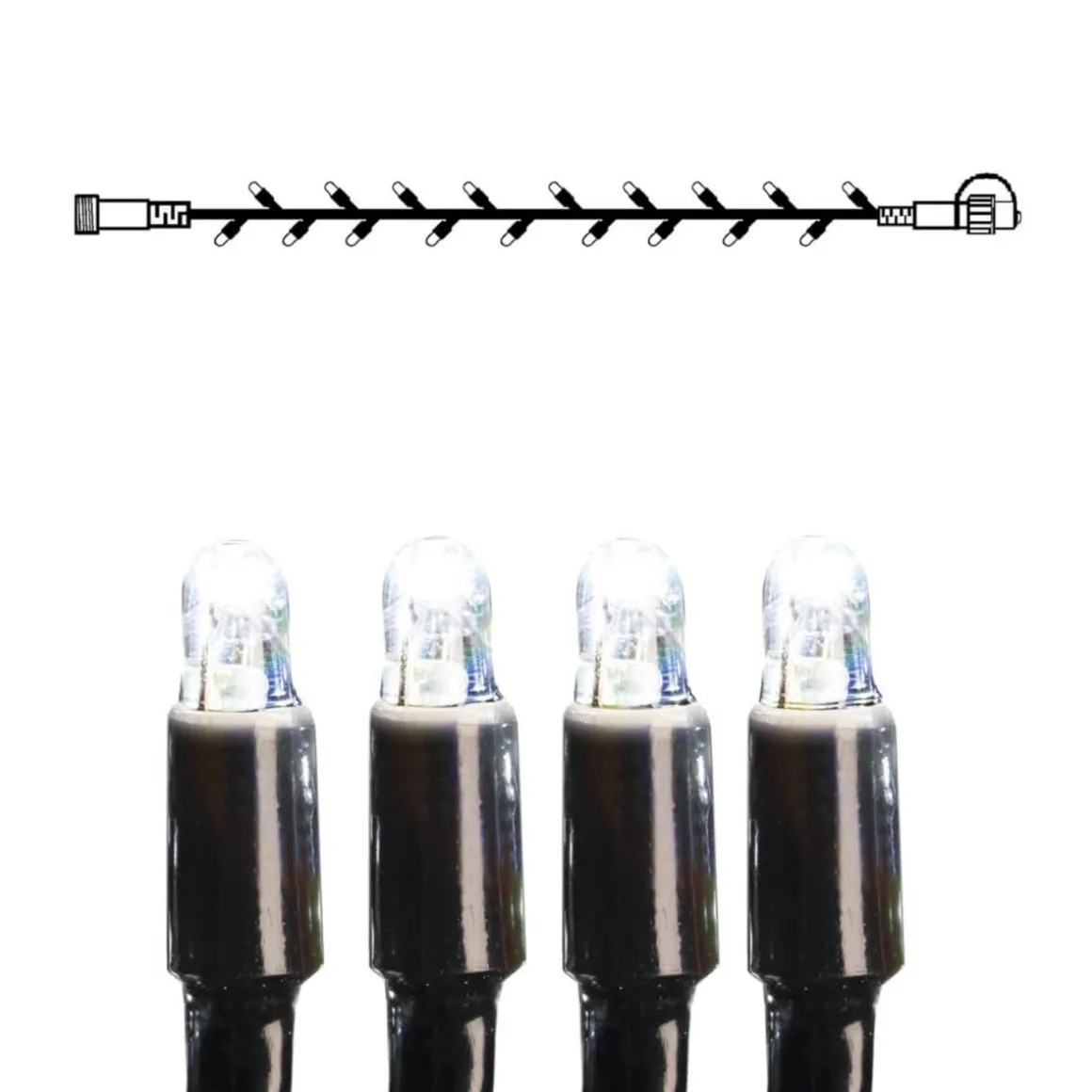 Förlängning med 5 meter och 50 kallvita ljus. Svart kabel. System LED är ett premiumsystem för större och hållbara dekorationer. Produkterna har en lång livslängd och ger ett mycket kraftigt ljussken.