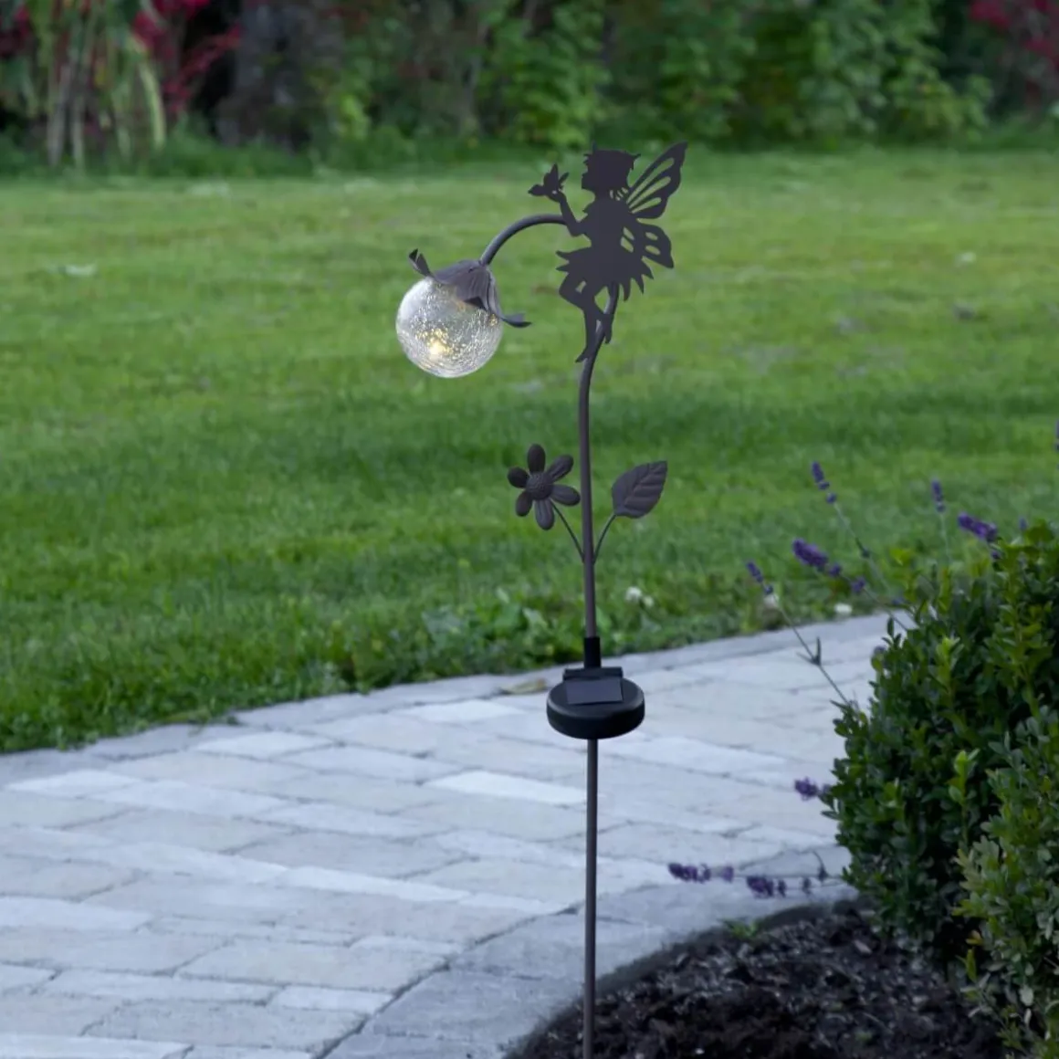 Lättplacerad liten gullig solcellsbelysning med formen av en älva som lyser upp av sig själv när det mörknar. Lyser gör hon med ett varmt och behagligt sken.