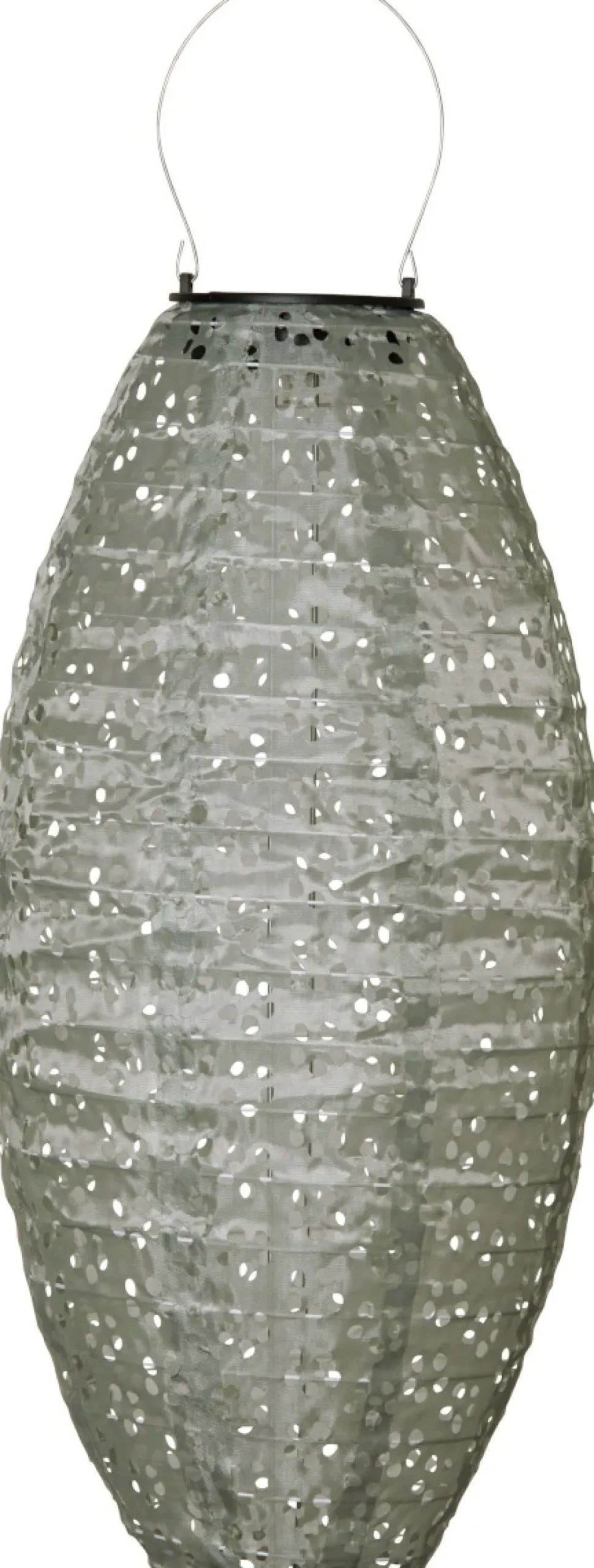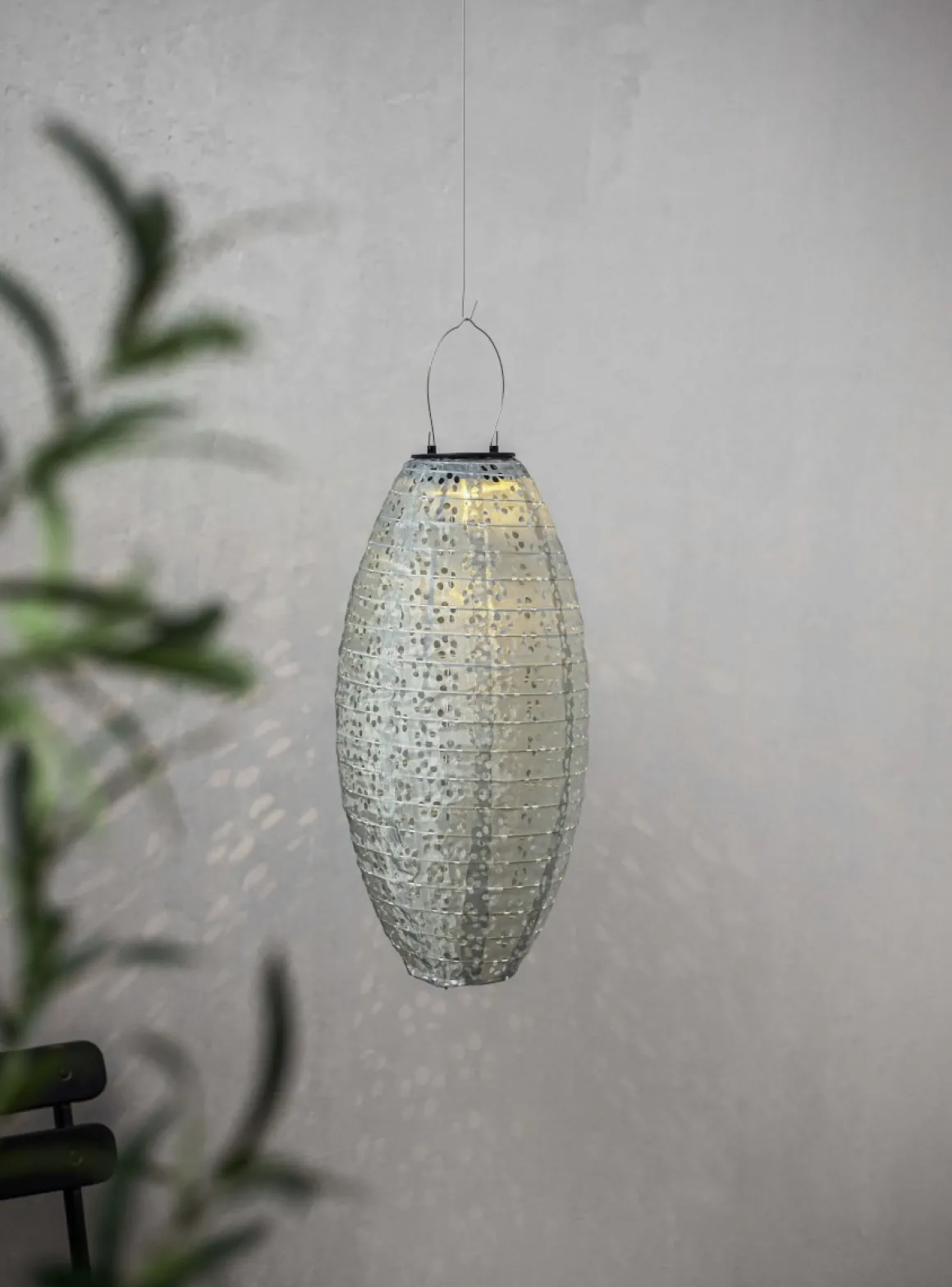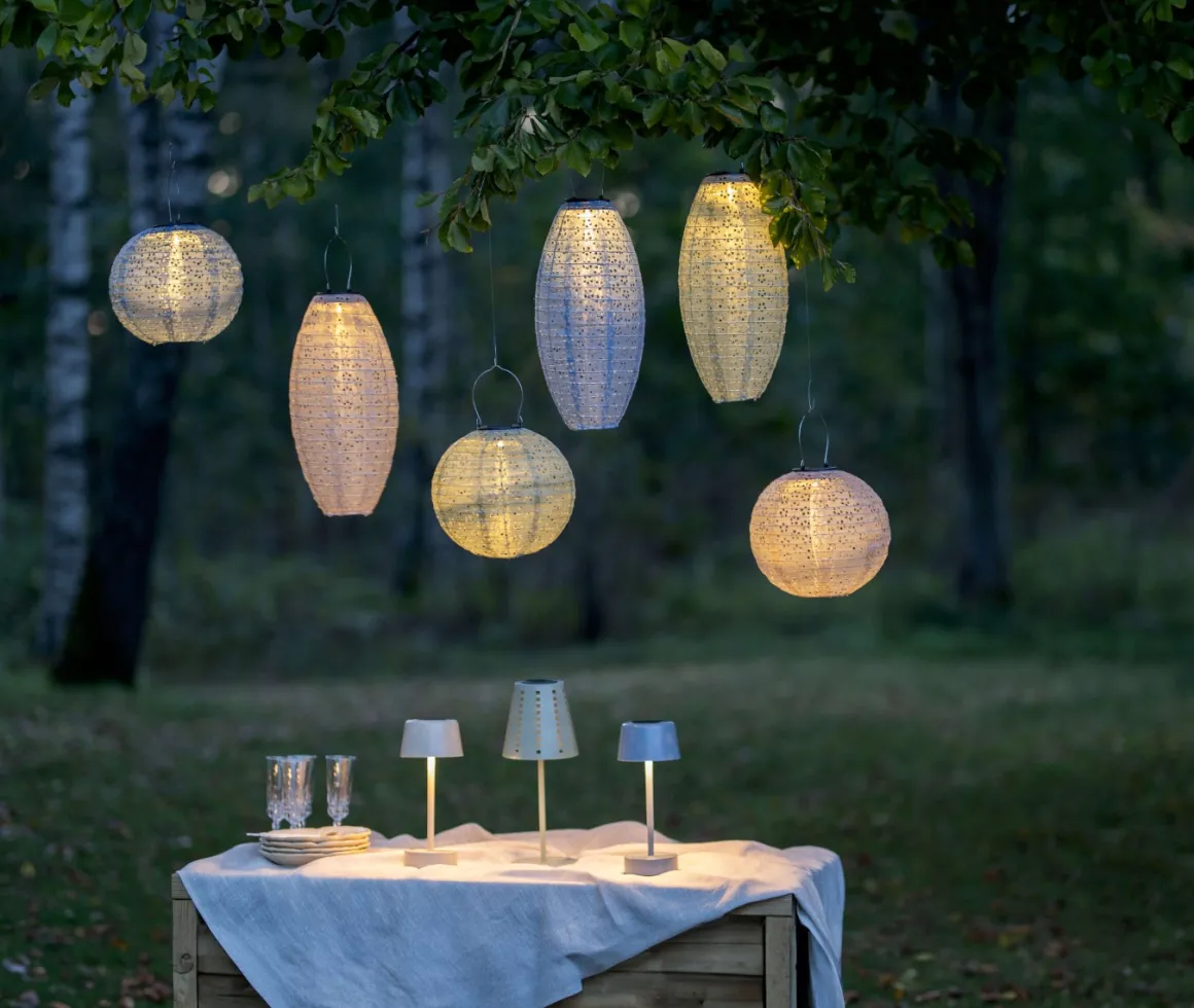 Solcellslyktan Festa är tillverkad av grön polyester med ett hålmönster som skapar ett vackert skuggspel när den lyser i mörkret. Den är en fantastisk dekoration för trädgården, terrassen eller balkongen. Festa finns i två modeller och tre färger, och denna specifika modell har en diameter på cirka 20 cm och nära 40cm i höjd. Placera lyktan så att solen kan nå panelen under dagen för optimal laddning av det medföljande batteriet. En perfekt detalj för att lysa upp din utomhusmiljö!