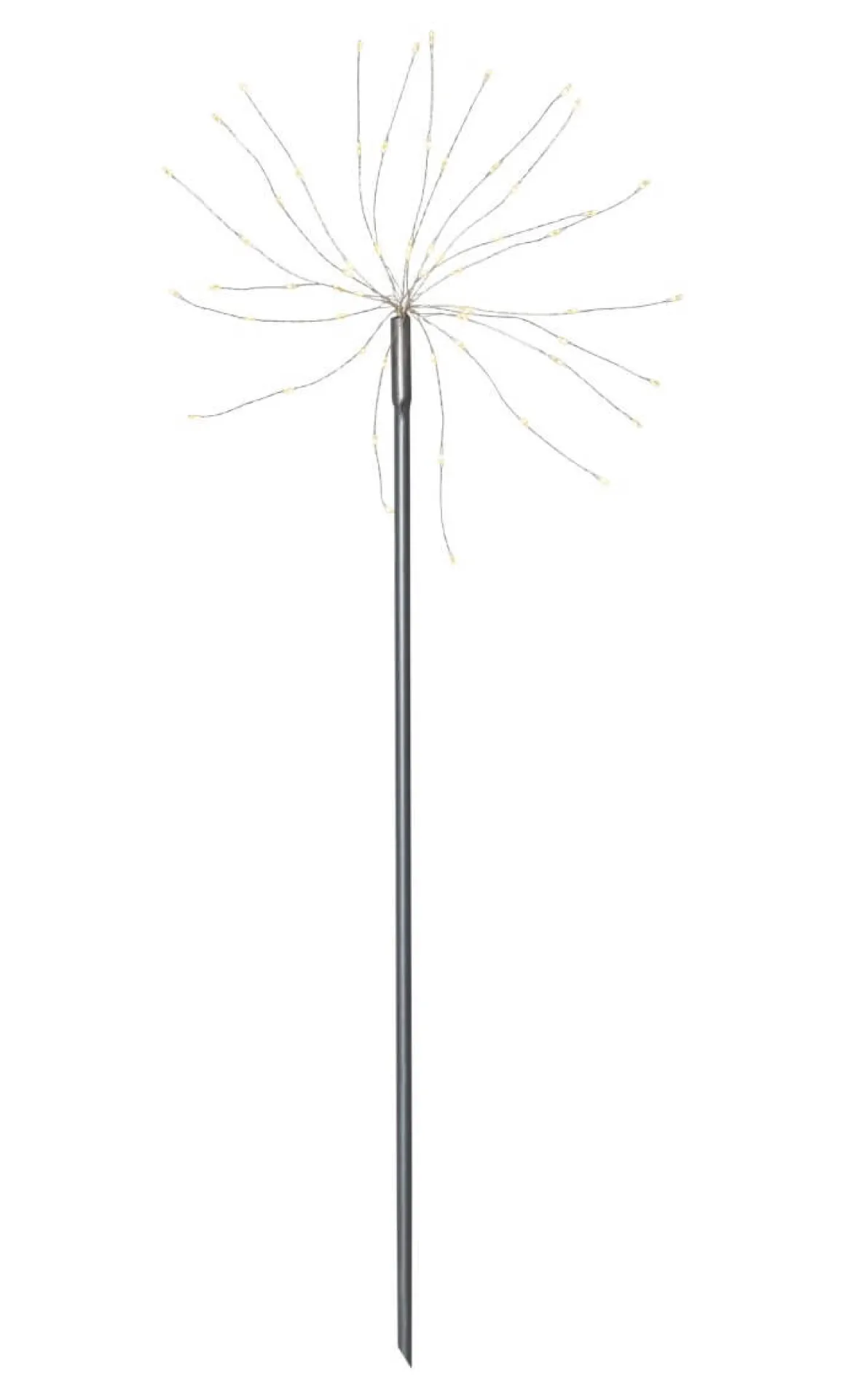 Den vackra Firework familjen har utökats med ett par nyheter i år, bland annat denna! Det är inte svårt att se varför firework är så populär, en härlig belysning med många ljuspunkter som blir ett säkert blickfång i din trädgård. Här med silverfärgad stomme och varmvita lampor. 3 pinnar med en meter mellan varje, vackert!