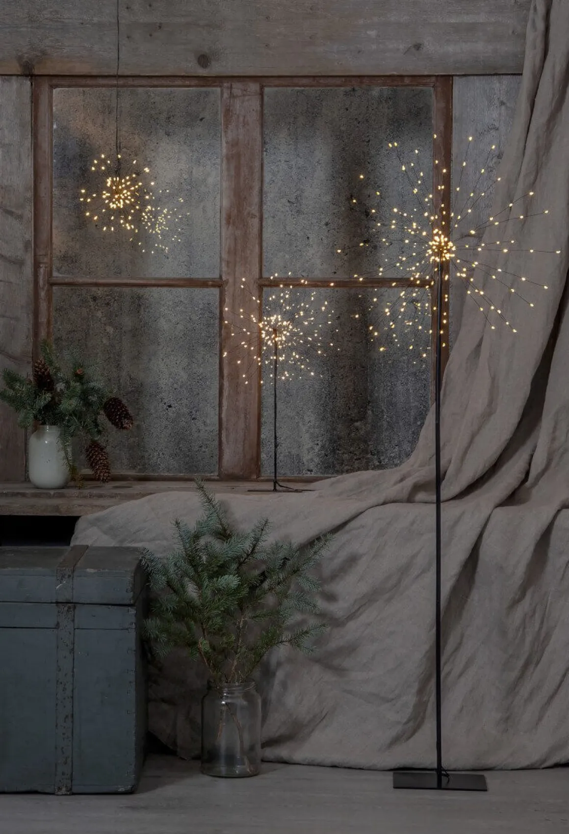 Vacker hängande dekoration i svart från star trading med små LED-ljuskällor som ger ett härligt ljus. Underbar dekoration för alla tillfällen så som jul, helger och fester. Firework är 16 cm och har hela 80 LED-ljuspunkter. Passar utmärkt som fönsterdekoration.