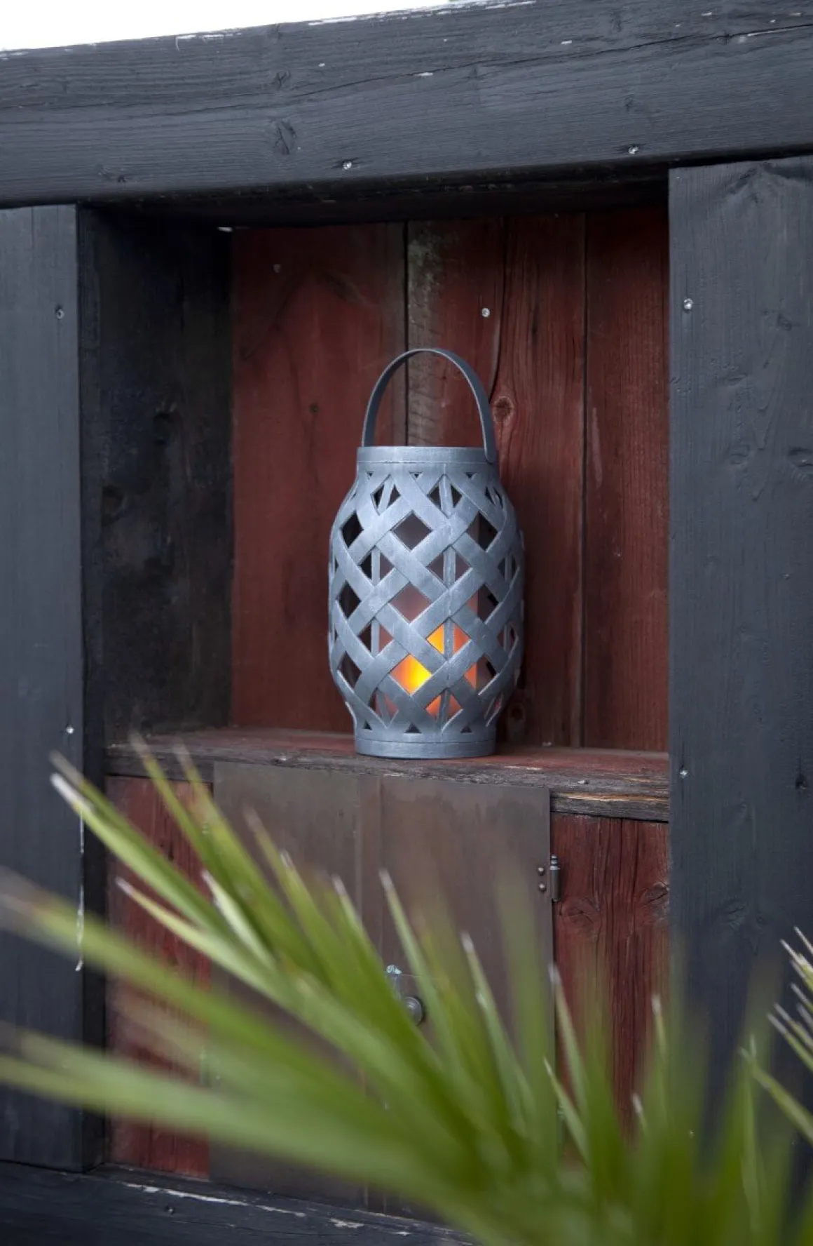 Tjusig lykta från Star Trading men flammande låga inuti, laddas av solens varma strålar för att sedan lysa upp i sommarnatten i din trädgård.