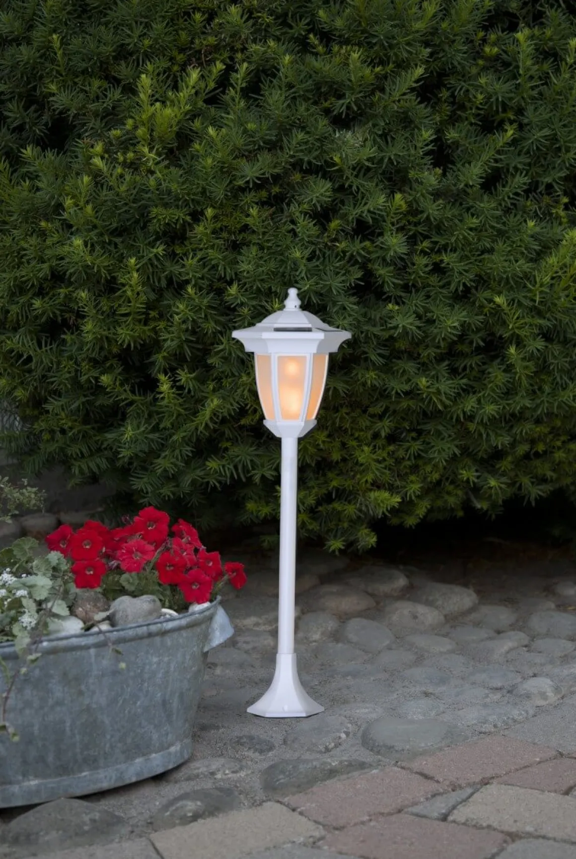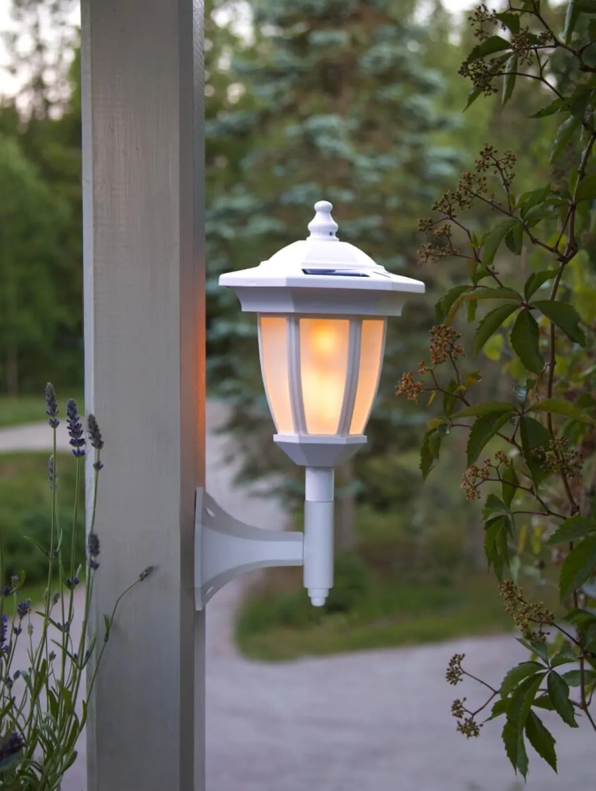 Jamen ja! Kolla in denna solcellslampan! Inte bara har den ett vackert flammande ljus utan du kan även ha den på 4 olika sätt! Vägghängd, som bordsdekoration, som golvdekoration, belysning på stolpe eller som gångljus