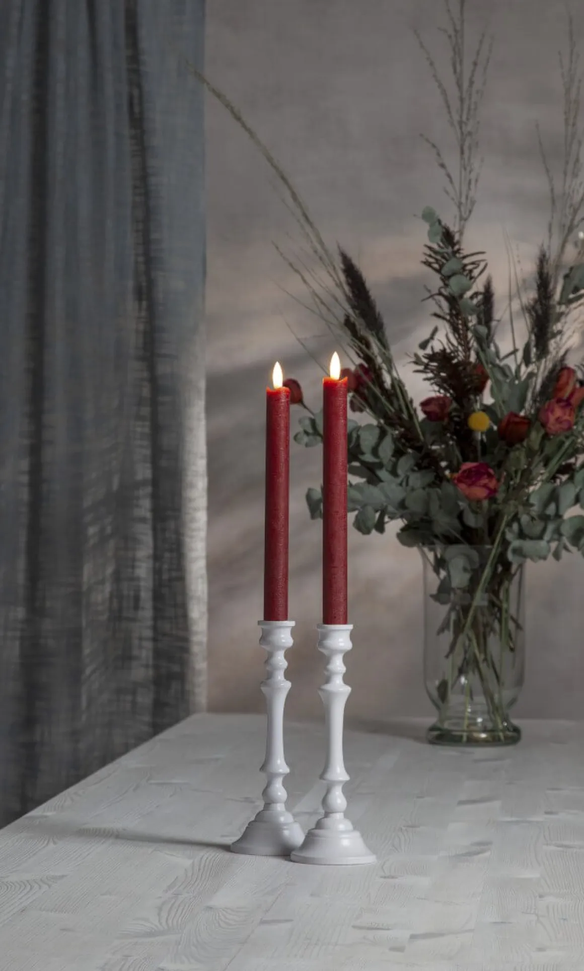 Härliga Flammeljusen nu äntligen i en läcker mörkröd färg! Vårt i särklass mest naturtrogna dekorationsljus. Självklart med inbyggd timer så du enkelt kan ställa in när du vill att den ska lysa.