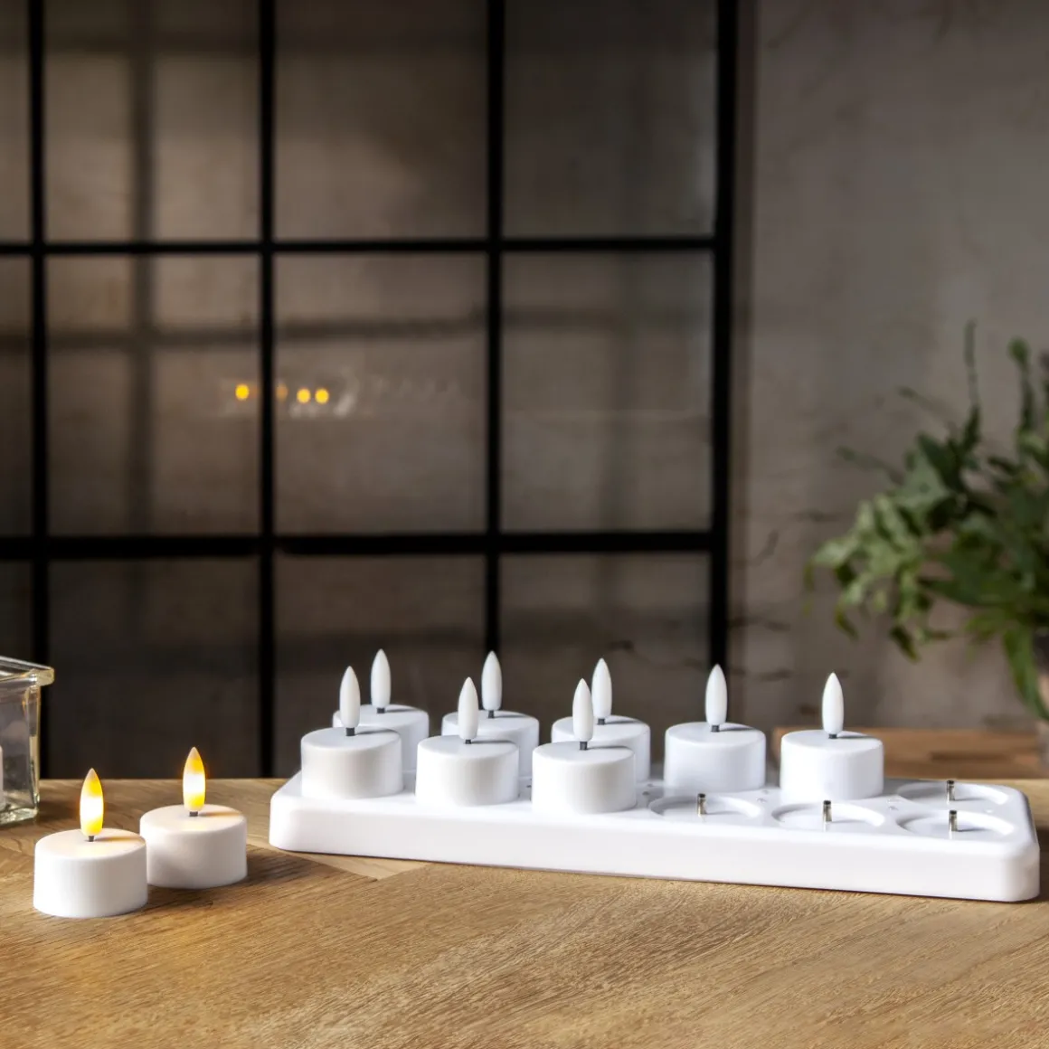 Flamme Charge från Star Trading är ett set med 12st vita värmeljus 4x5cm som är uppladdningsbara. Den tillhörande laddningsplattan har även en medföljande 80cm lång kabel med USB kontakt som enkelt går att kopplas in i en 5V adapter, adaptern ingår inte. Indikationslampan i varje ljus lyser röd under laddning och grön när ljuset är färdigladdad. Även om litium batterierna har överladdningsskydd så Låt EJ ljusen ladda längre än 5 timmar max!