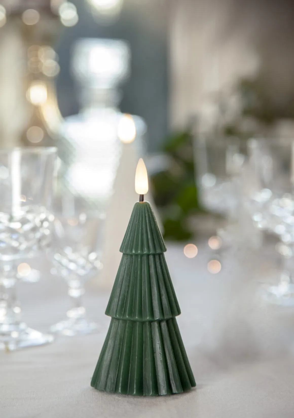 Flamme Grany nu i grönt är ett batteridrivet blockljus i form av en gran från välkända Star Trading. Grany lyser med ett varmvitt sken i toppen med den naturtrogna lågan Flamme. Ljuset är cirka 9,5cm i diameter och höjden 15,5cm för vax delen och cirka 18cm totalhöjd med lågan. Detta ledljus blir en vacker dekoration, både ensam och i grupp ihop med övriga ljus från Flamme serien. Den har självklart timerfunktion och när brytaren är på timerläget lyser ljuset i ca 30 dagar med en vacker realistisk låga i varmvitt. Den drivs av 2 AA batterier, dessa ingår ej.
