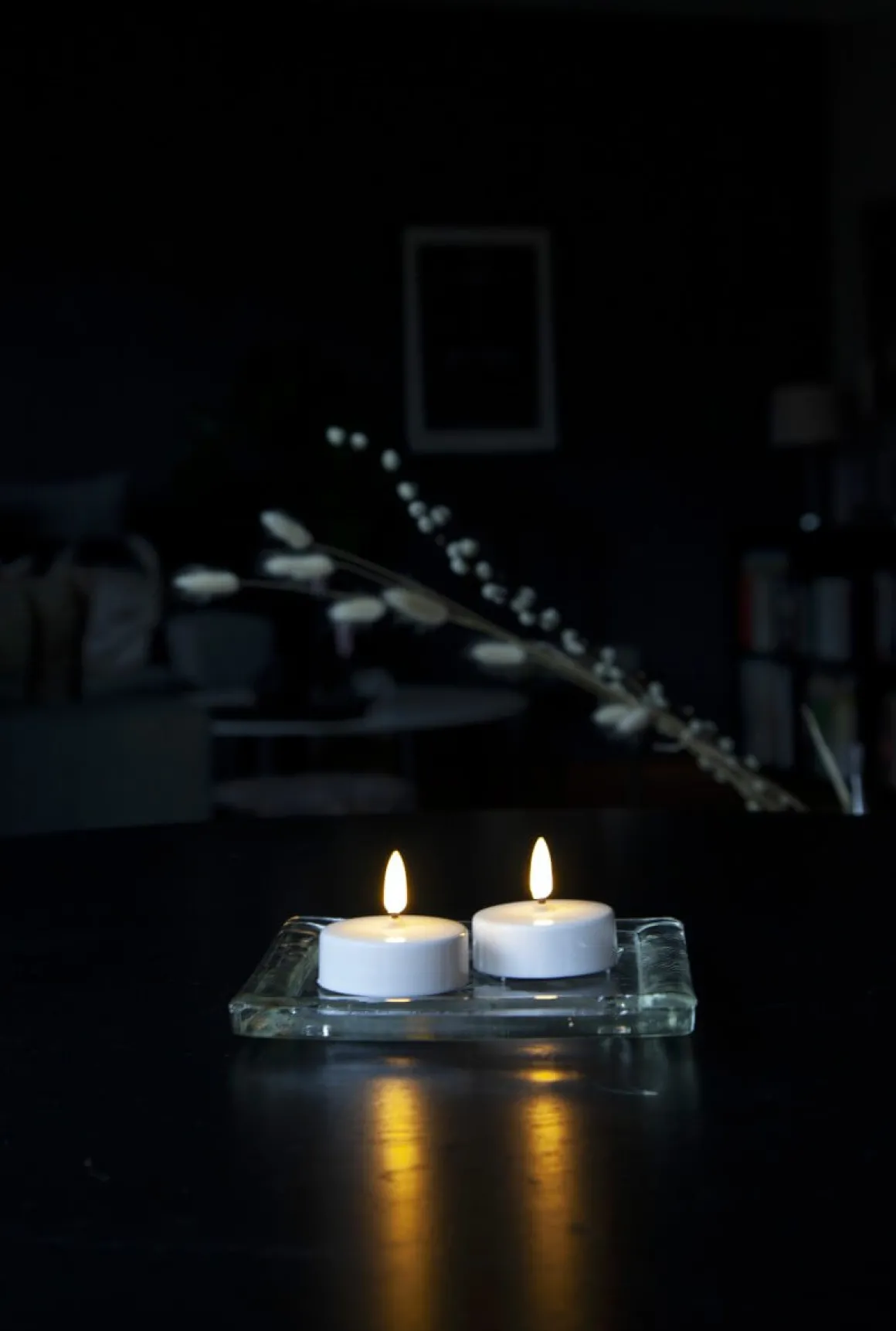 Mysiga värmeljus som säljs i 2-pack med en diameter på 58mm. Lyser med flammande varmvitt sken i som matchar övriga produkter i Flamme serien och har inbyggd timer.