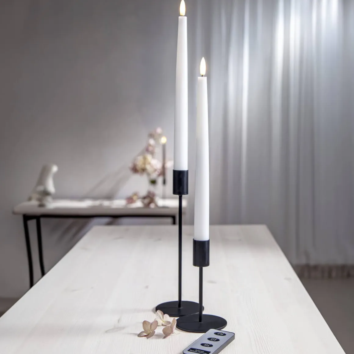 2-pack med vita släta höga antikljus tillhörande Star Tradings oerhört populära Flamme serie. Ljusen har en mycket naturtrogen låga som lyser med ett varmt och mjukt sken. Om du är på jakt efter ett verklighetstroget ljus så är det denna serien du ska titta på. Alla Flamme ljus har en inbyggd 6 timmars timer så att du lätt kan ställa in när du vill att dem ska lysa. Dessa två ljusen levereras dessutom med en liten fjärrkontroll för enklare styrning. Batterier säljes separat.