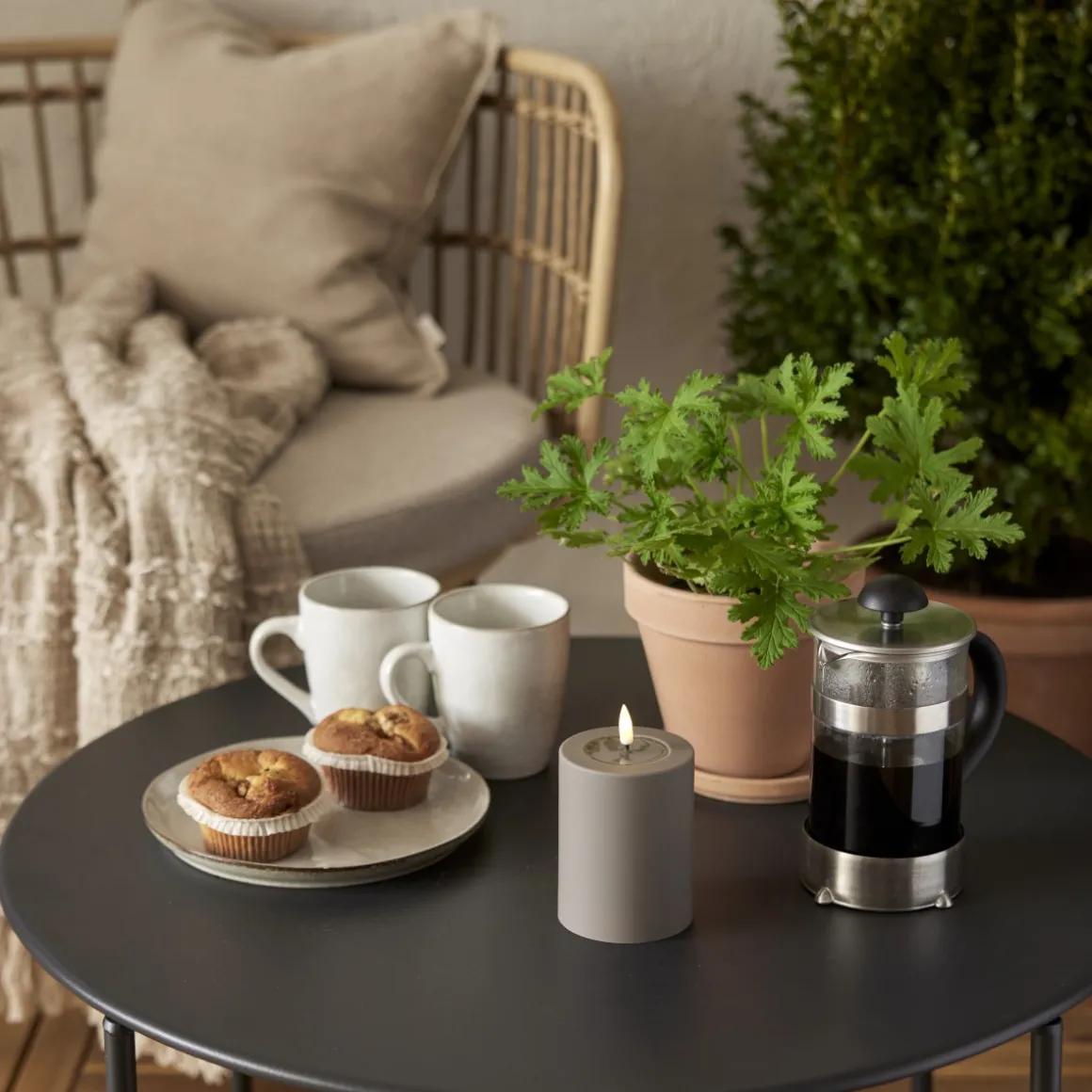 Flamme Soft Mullvad batteriljus med naturtrogen Flamme-låga lyser i 1000 timmar. Tillverkat i plast med sammetslen yta och blank vaxliknande nedsänkning för realistisk look. Mått: 7,5 cm diameter, 10 cm hög (12,5 cm med låga). Perfekt som dekoration, inomhus eller utomhus, ensam eller i grupp. Inbyggd timer för 6h varmvitt sken. Drivs med 2 AA-batterier (ingår ej). Skapa mysig stämning med Flamme-serien!