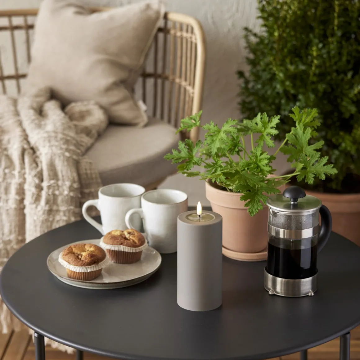 Flamme Soft Mullvad batteriljus med naturtrogen Flamme-låga lyser i 1000 timmar. Tillverkat i plast med sammetslen yta och blank vaxliknande nedsänkning för realistisk look. Mått: 7,5 cm diameter, 15 cm hög (17,5 cm med låga). Perfekt som dekoration, inomhus eller utomhus, ensam eller i grupp. Inbyggd timer för 6h varmvitt sken. Drivs med 2 AA-batterier (ingår ej). Skapa mysig stämning med Flamme-serien!