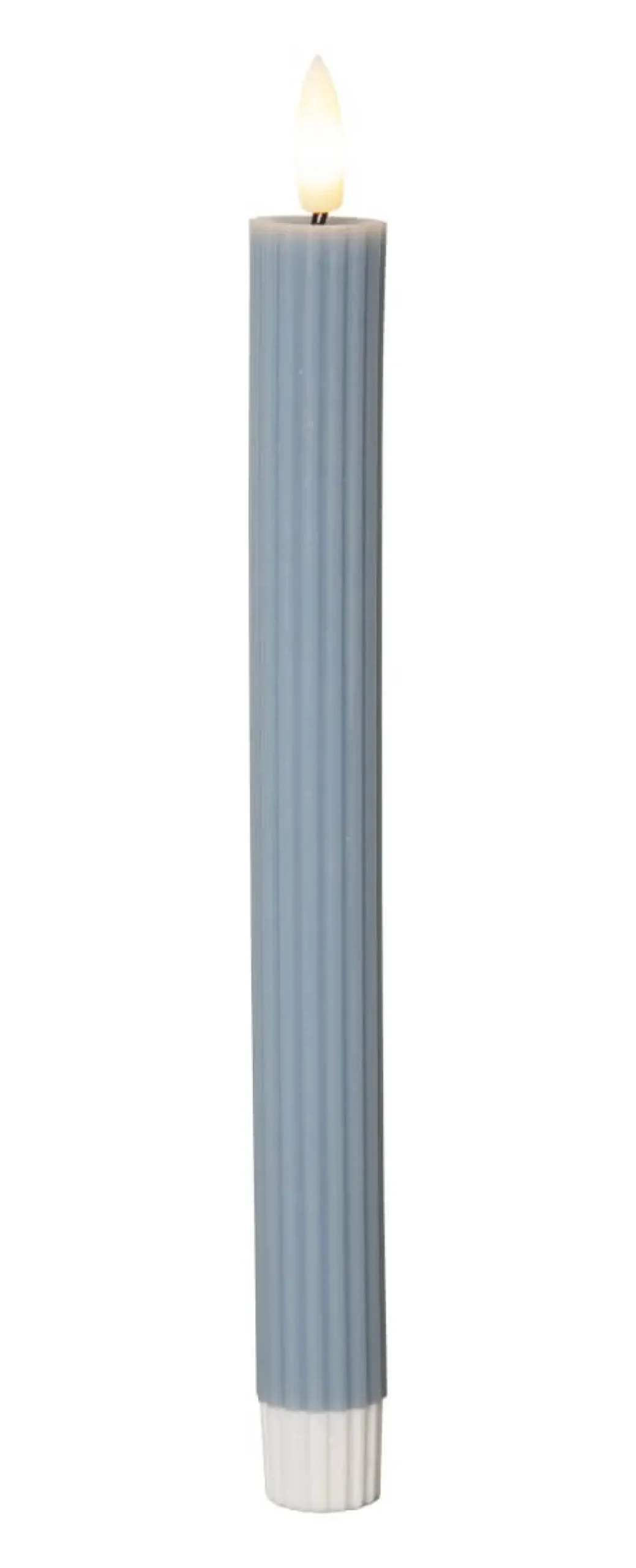 2-pack med blå räfflade antikljus tillhörande Star Tradings oerhört populära Flamme serie. Ljusen har en mycket naturtrogen låga som lyser med ett varmt och mjukt sken. Om du är på jakt efter ett verklighetstroget ljus så är det denna serien du ska titta på. Alla Flamme ljus har en inbyggd 6 timmars timer så att du lätt kan ställa in när du vill att dem ska lysa. Batterier säljes separat.