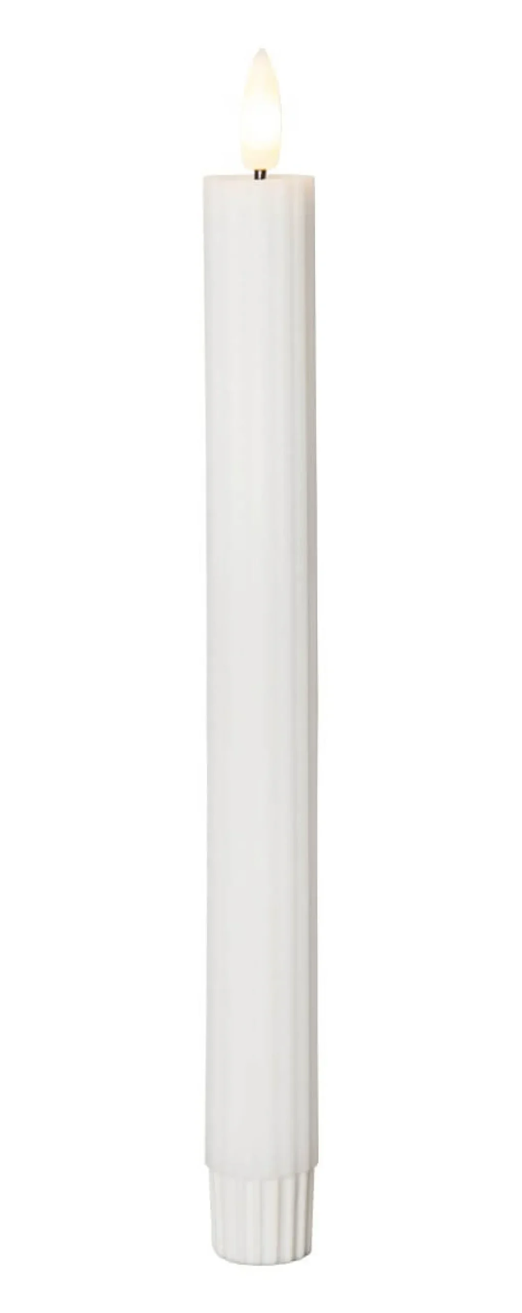 2-pack med vita räfflade antikljus tillhörande Star Tradings oerhört populära Flamme serie. Ljusen har en mycket naturtrogen låga som lyser med ett varmt och mjukt sken. Om du är på jakt efter ett verklighetstroget ljus så är det denna serien du ska titta på. Alla Flamme ljus har en inbyggd 6 timmars timer så att du lätt kan ställa in när du vill att dem ska lysa. Batterier säljes separat.