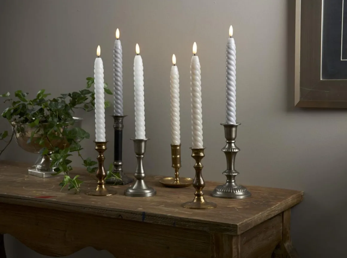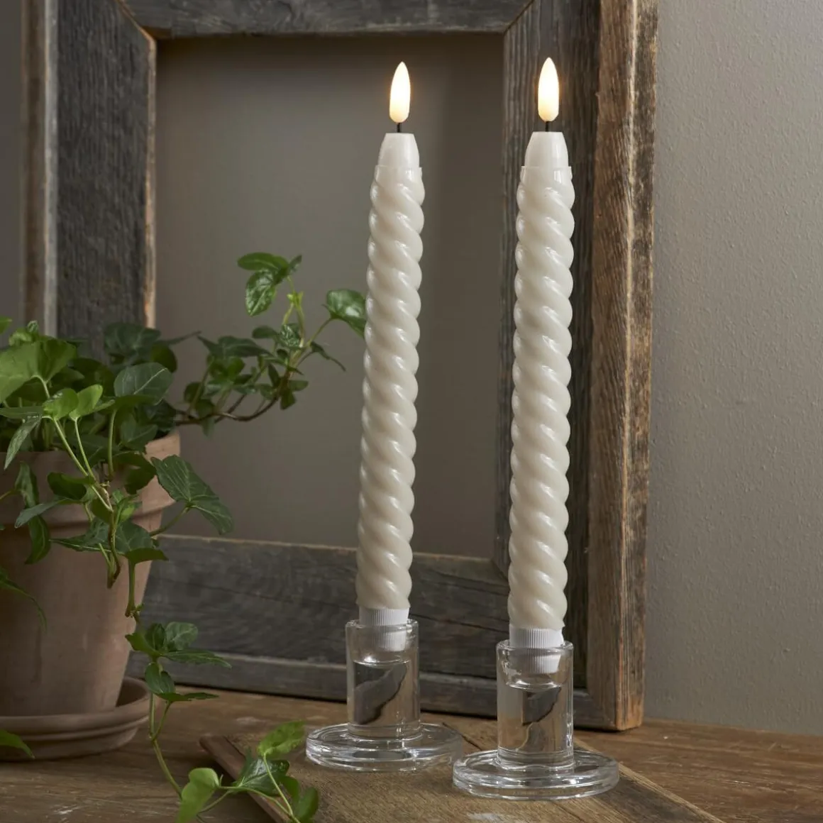 Wohooo! Kolla in denna läckra nyhet! Beige antikljus med twist formad vax i den populära Flamme serien. Den mycket naturtrogna lågan lyser med ett varmvitt mysigt sken. Självklart med inbyggd timer. (15 cm hög)