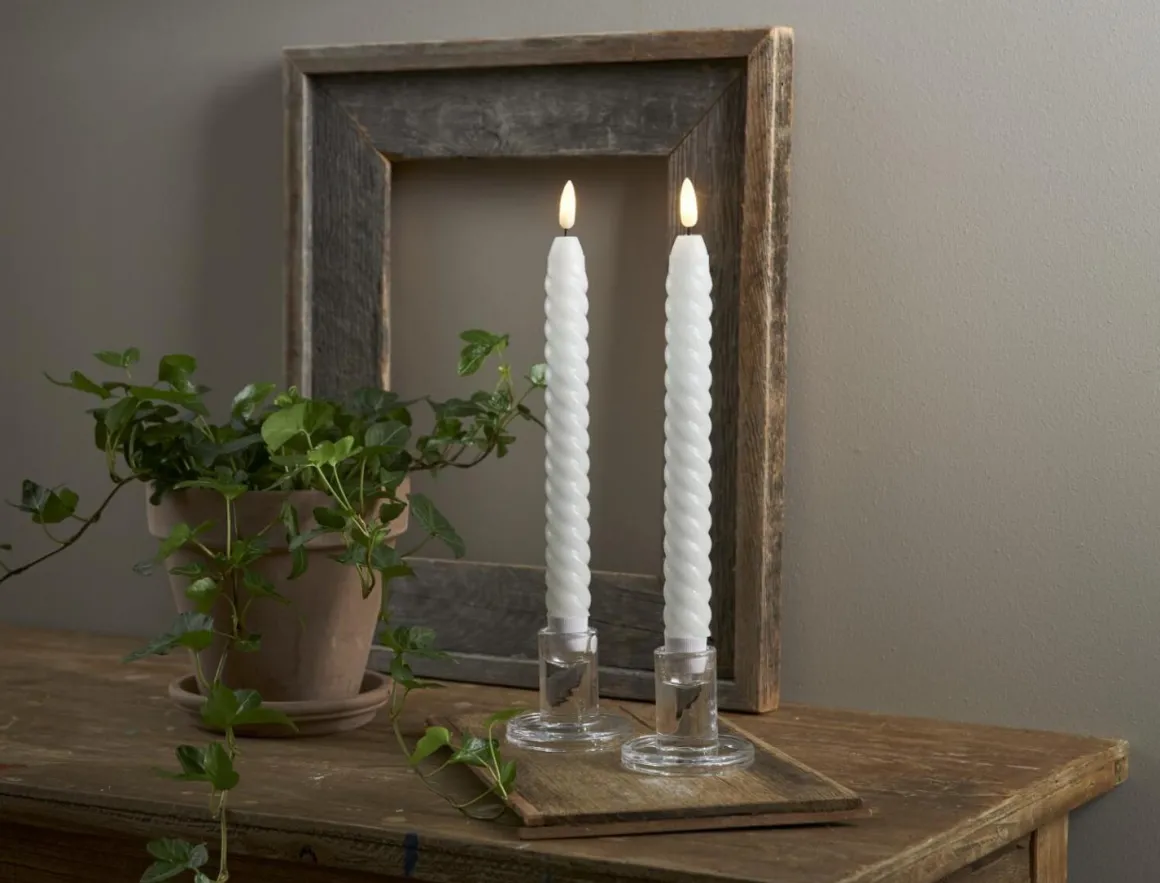 Wohooo! Kolla in denna läckra nyhet! Vitt antikljus med twist formad vax i den populära Flamme serien. Den mycket naturtrogna lågan lyser med ett varmvitt mysigt sken. Självklart med inbyggd timer.
