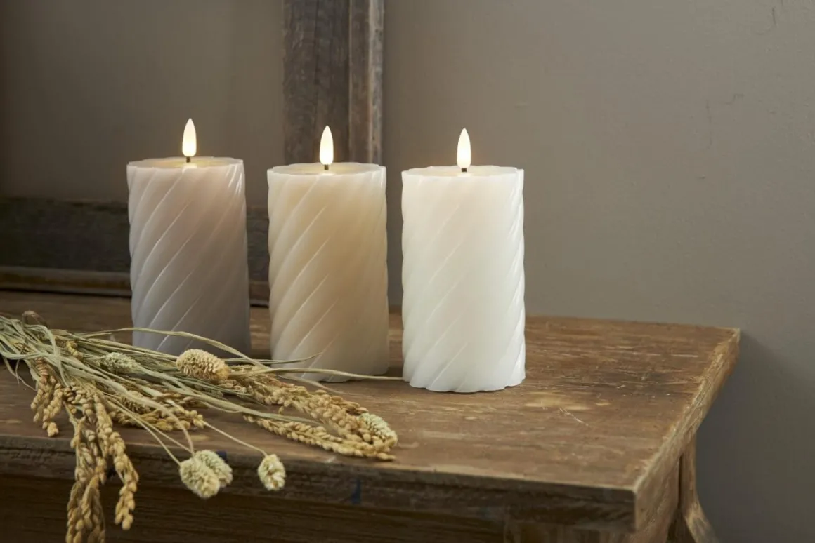 Wohooo! Kolla in denna läckra nyhet! Vit Blockljus med twist formad vax i den populära Flamme serien. Den mycket naturtrogna lågan lyser med ett varmvitt mysigt sken. Självklart med inbyggd timer.