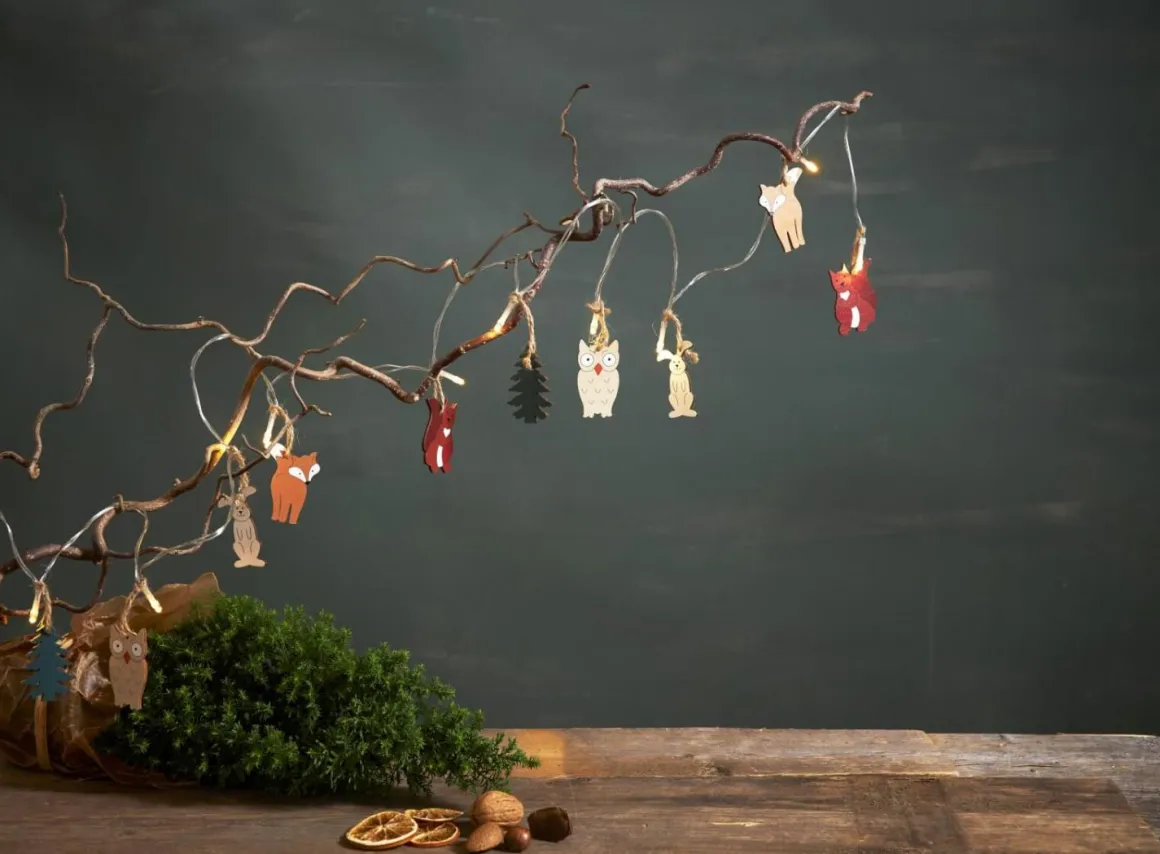 Så söt liten dekorationsslinga i den nya serien forest friends från star trading, 10 stycken små figurer av skogens djur med 10 stycken små LED-lampor. Slingan drivs med batteri och har givetvis en inbyggd timer.
