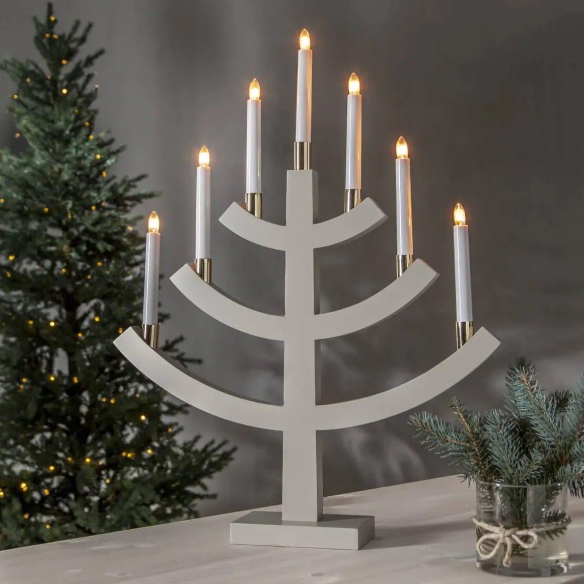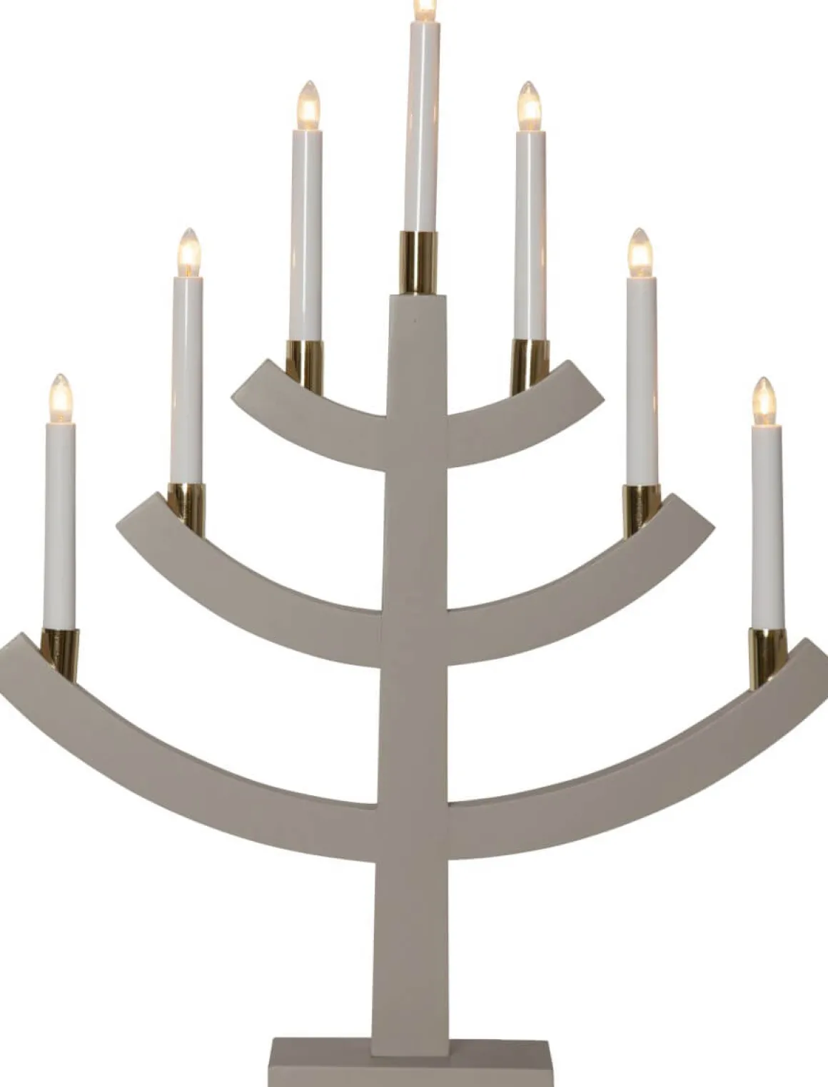 Läcker Beige 7-armad träljusstake med mässingbelagda ljushållare från Star Trading. Super härlig adventsljusstake att dekorera med till jul.
