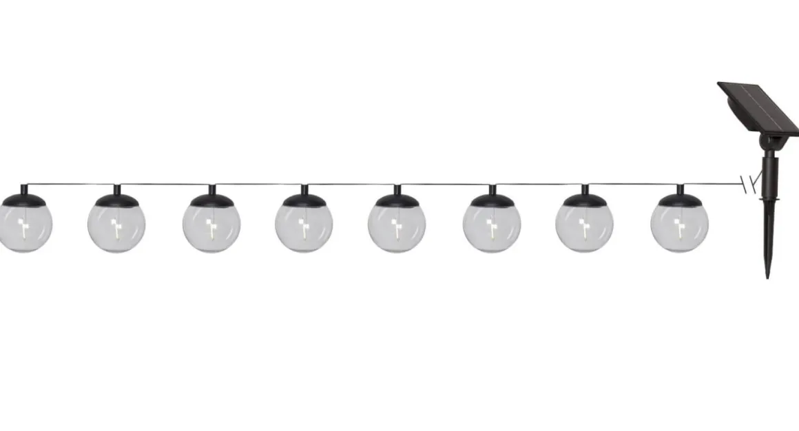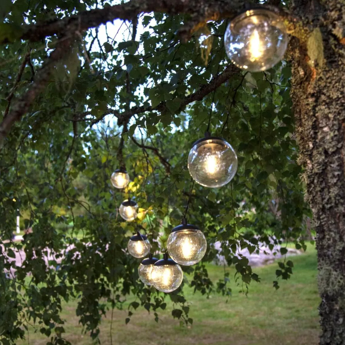 Solcellsslingan Globe från Star Trading har 8 glober som är tillverkad i transparent PS plast med 30cm kabel emellan. Bollarna lyser upp med filament LED i varmvitt behagligt sken i mörkret. Solcellsbelysningen passar utmärkt att placera som dekoration i din trädgård, balkong eller terrass. Själva paneldelen sitter med 170 cm kabel från den sista globen detta gör det enkelt att placera panelen i direkt solljus vilket är nödvändigt för att ladda batteriet som medföljer. Placera solcellsdekorationen där solen kan nå panelen under dagen för att få ultimat laddning till det medföljande batteriet.