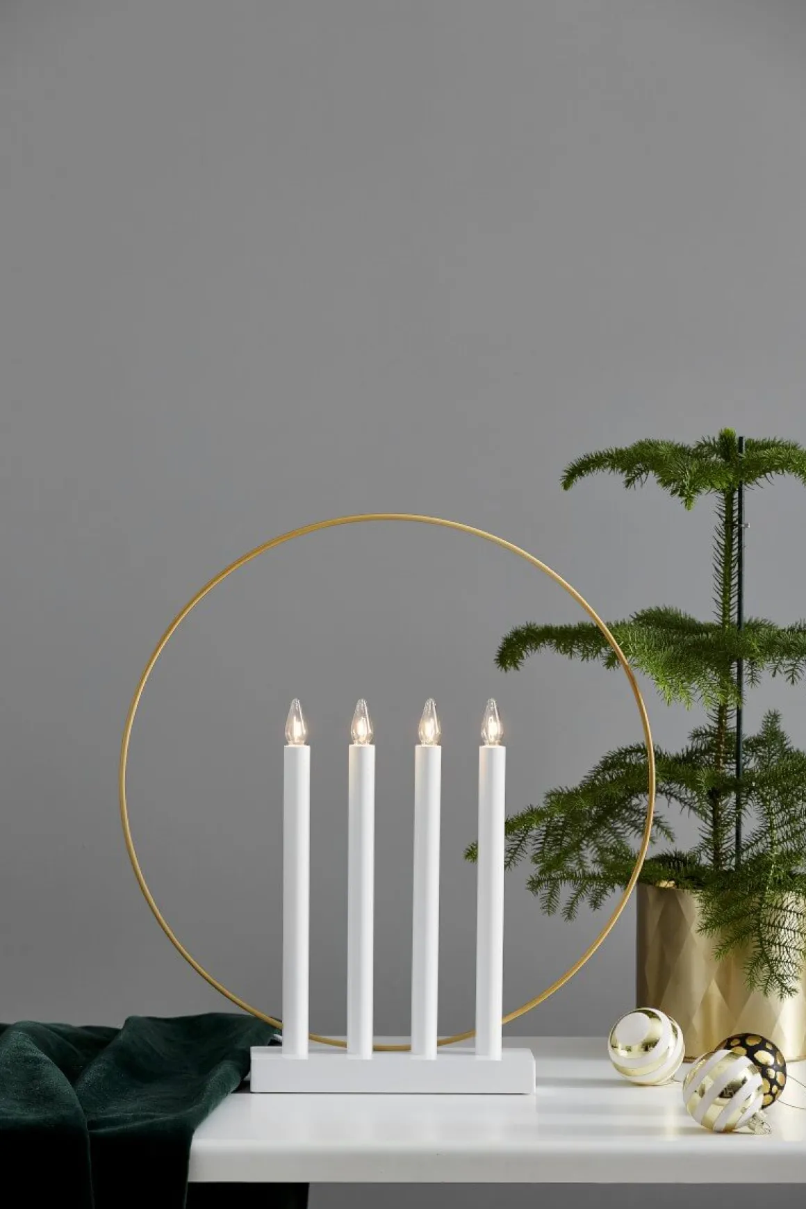 Star Trading bygger vidare på det stilrena temat med en stomme i vitt som omfamnas av en ring i mässing! Den ger ett så vackert sken och skapar med enkelhet den där sköna julkänslan i ditt hem.