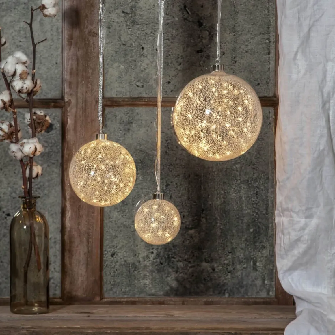 Härliga Glow serien har berikats med ännu en modell, denna gången med en kula med ett härligt dekorativt mönster över hela kupan. Gemensamt för dem alla är att de alla lyser med ett varmt och behagligt sken som ges av den slimmade dew drop-slingan i mitten. Här ser du lilla Glow i 16,5 cm.