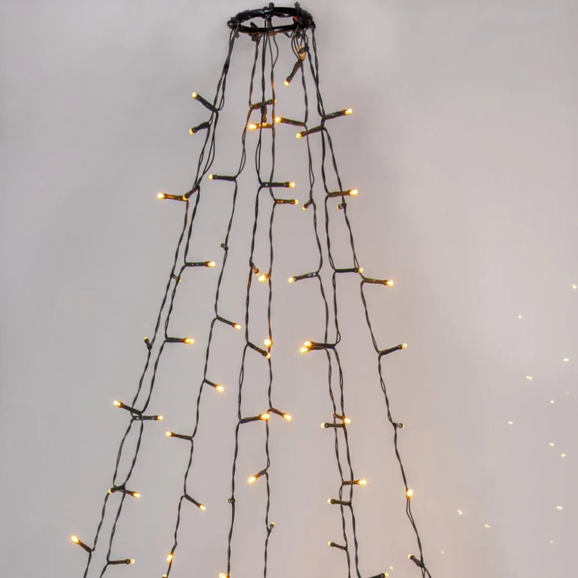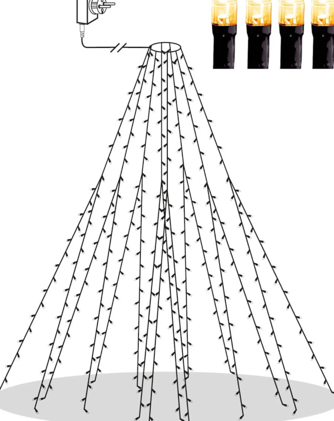 Perfekt julgransslinga med hela 360 LED lampor med vackert gyllene ljussken från star trading. Slingan är ca 2 meter hög med 8 strängar som går ihop i toppen för att få en jämn spridning av lysdioderna. Perfekt för din julgran både inne och utomhus.