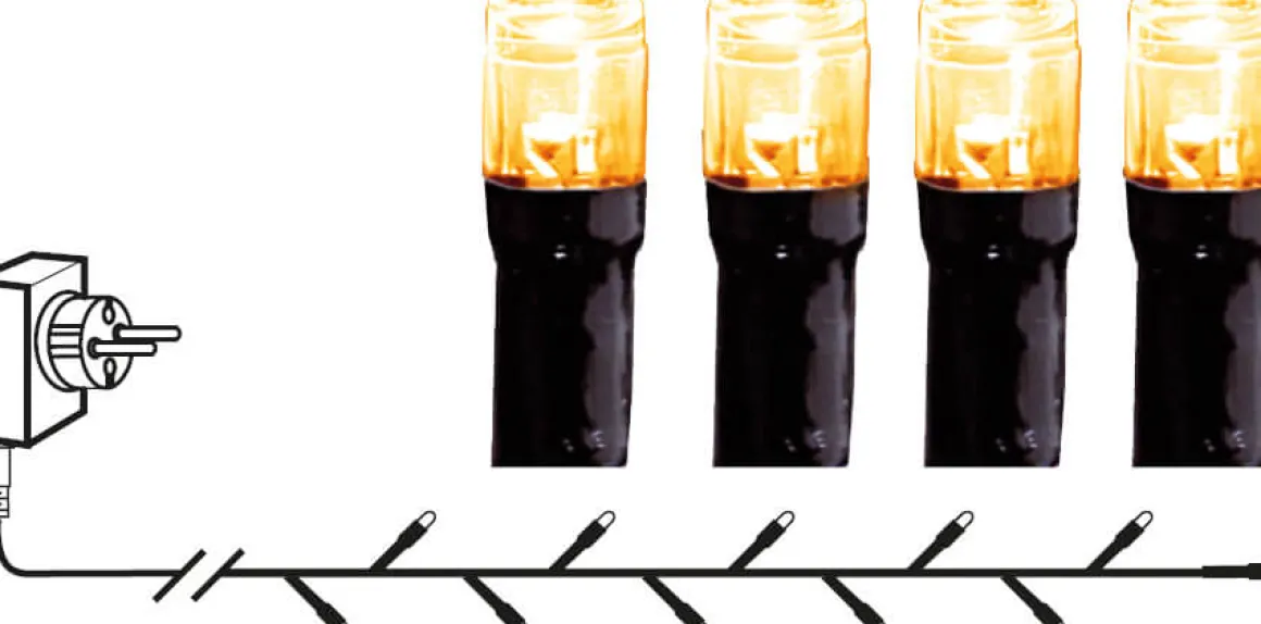 Ljusslinga med 40 LED lampor med vackert gyllene ljussken från star trading. Slingan är ca 3 meter lång med ett avstånd på 7cm mellan lamporna. Perfekt för din trädgård och balkong.