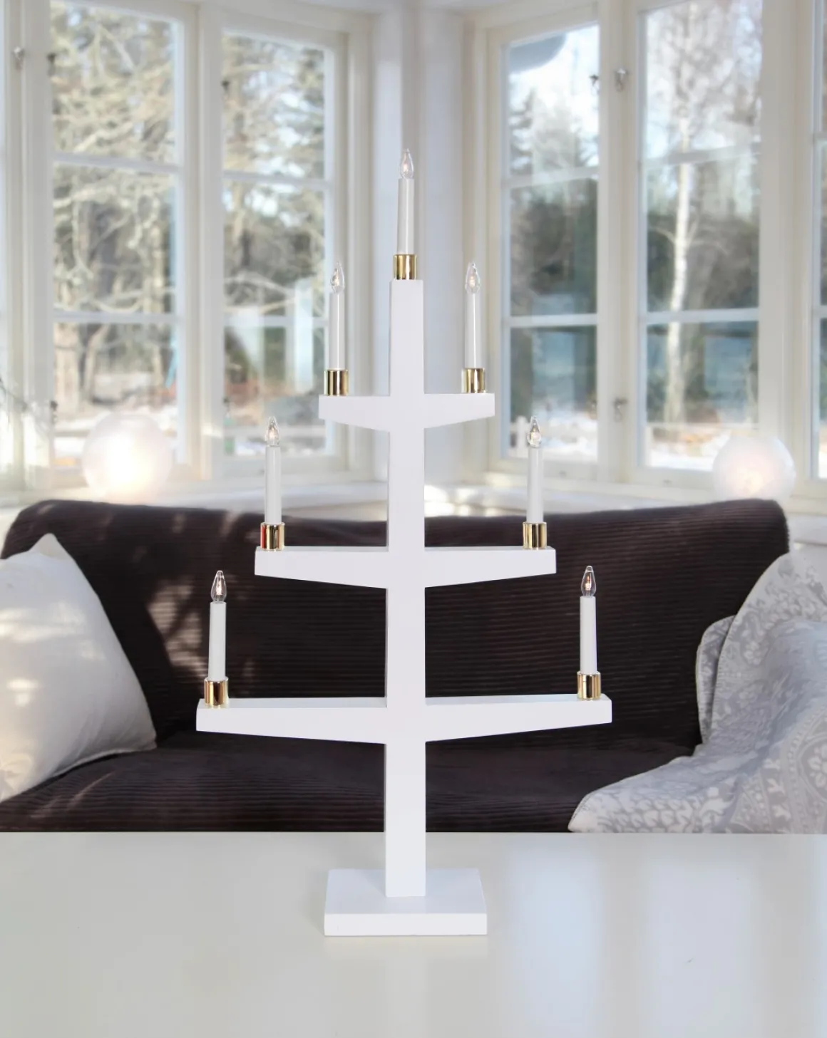 Stilren och elegant träljusstake som lätt hittar sin plats i hemmet, extra lyxig känns den med sina små ljushållare i mässing.