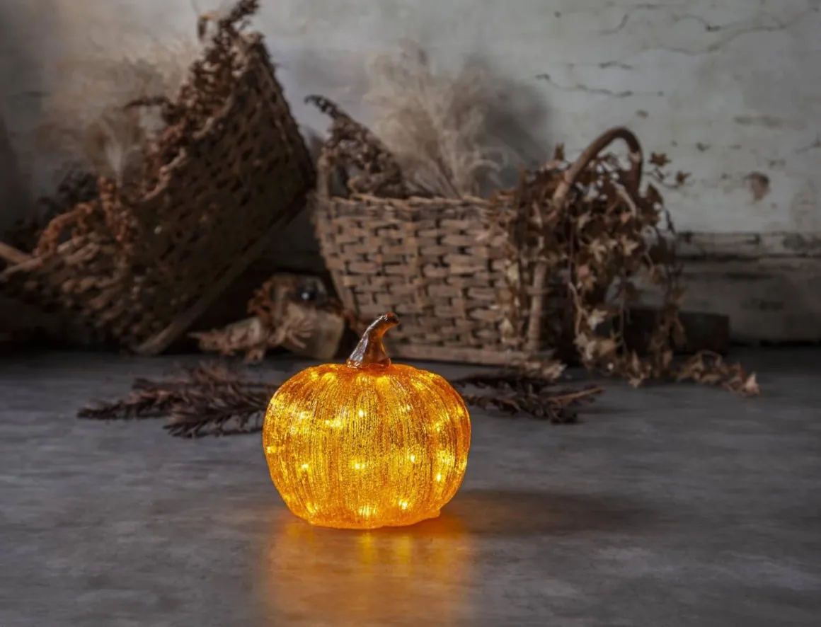 Här ser du coola acryldekorationen Harvy i form av en pumpa från Star trading, 20 cm, passar lika bra inne som ute. Utmärkt till höstens dekorationer och Halloween, ger ett fint ljussken i trädgården, på altanen eller trappan. Batteridriven med timer funktion. Harvy finns i två storlekar som med fördel kan kombineras ihop här ser du den lilla. Batterdriven med timerfunktion.
