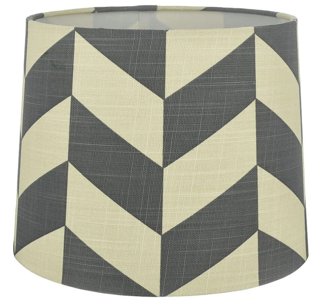 Herringbone lampskärm från Oriva i härligt mönstrat Linne tyg. Här ser du stora Herringbone i grå/vit 25 cm.