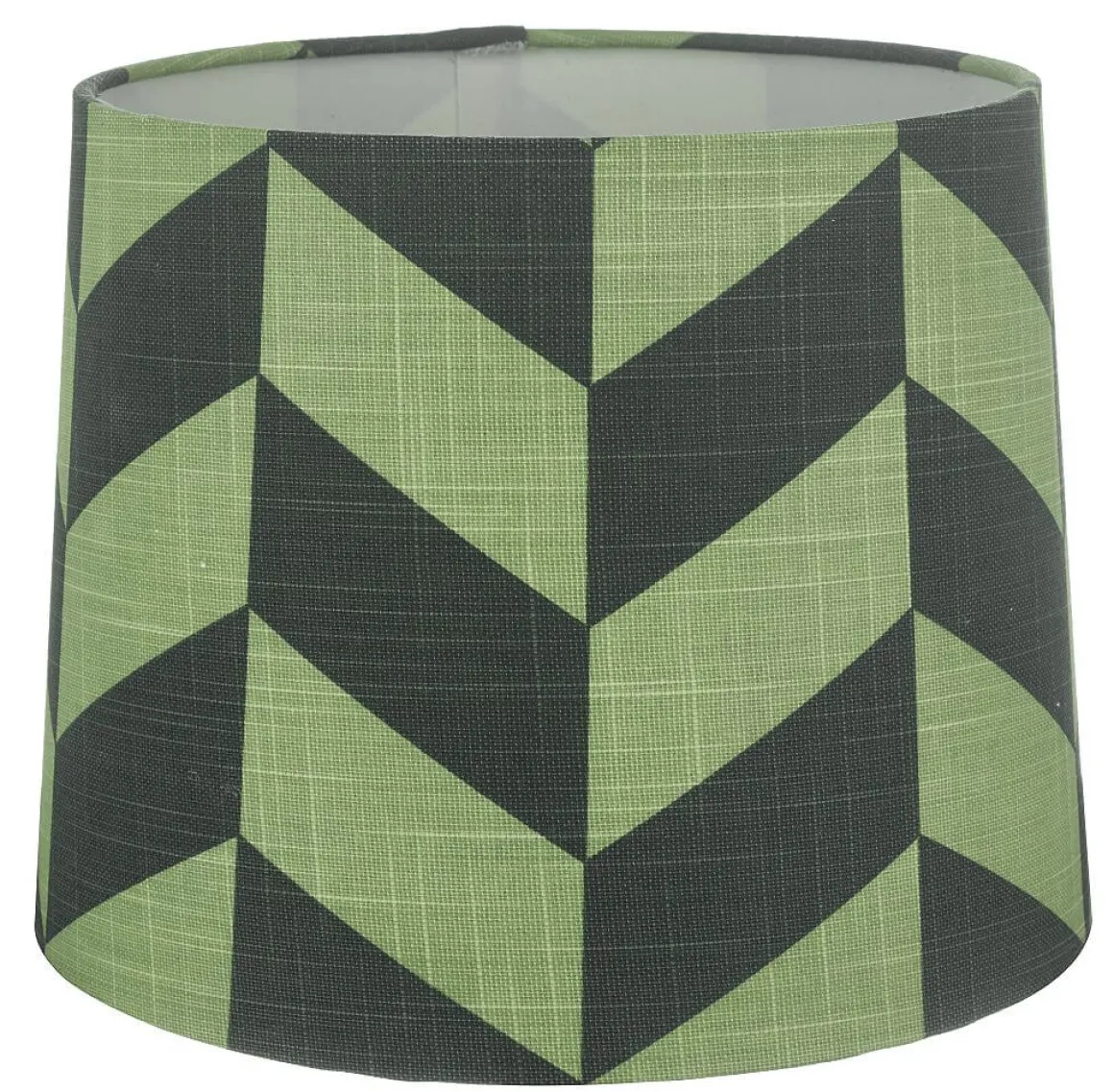 Herringbone lampskärm från Oriva i härligt mönstrat Linne tyg. Här ser du stora Herringbone i grön 25 cm.